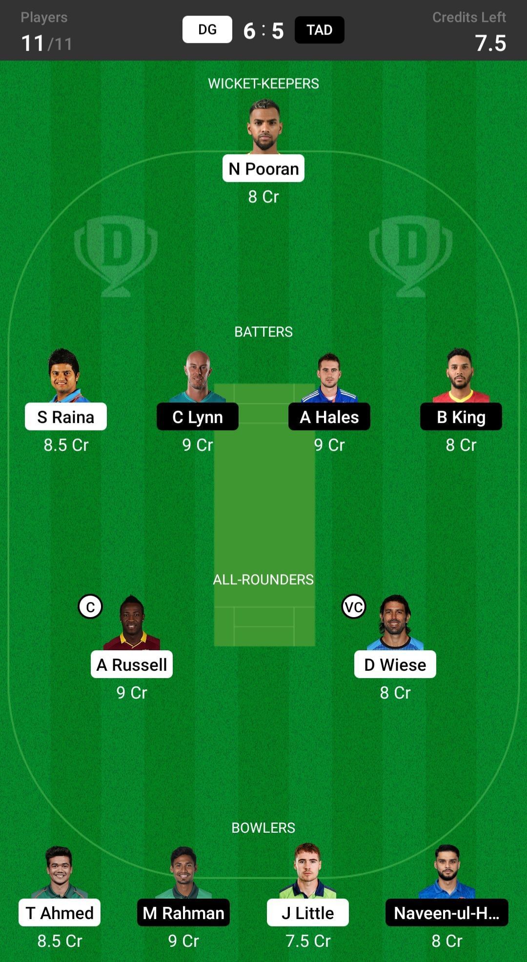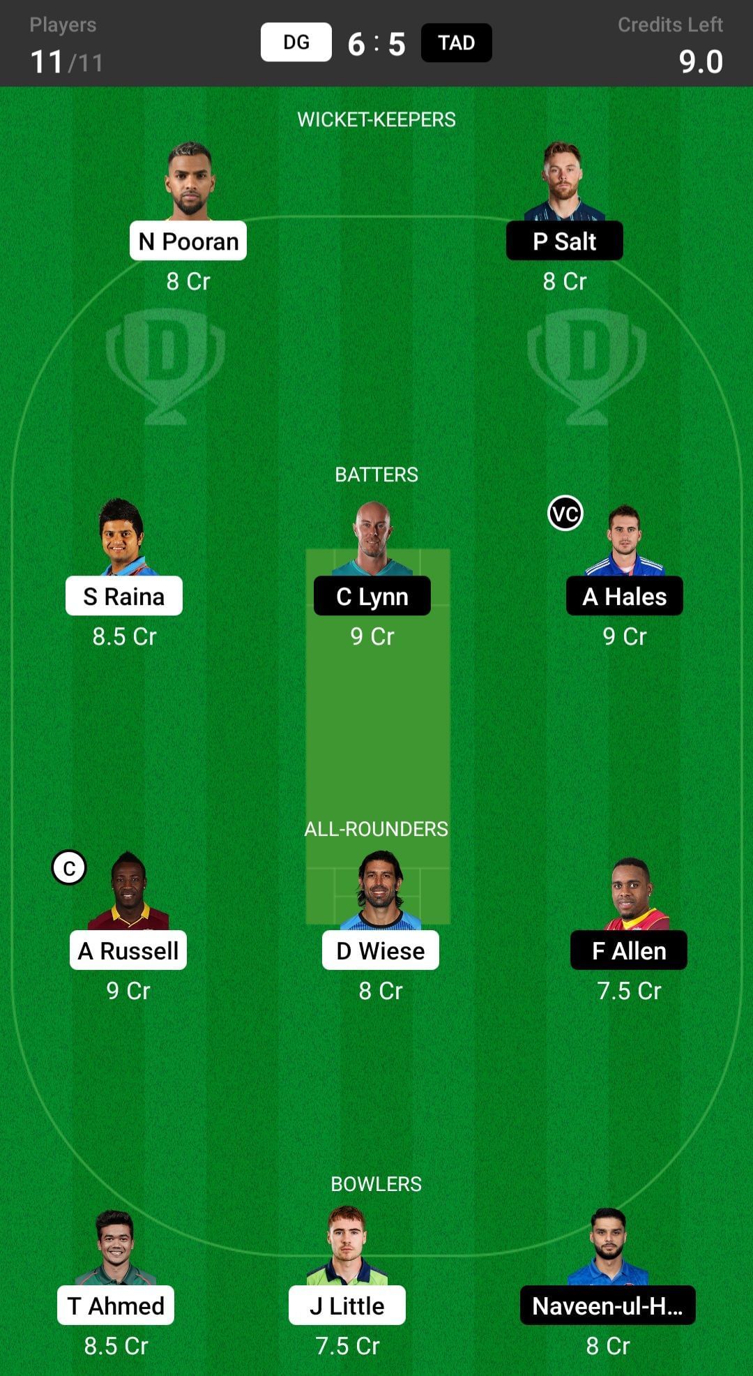 DG vs TAD match captain and vice-captain choices