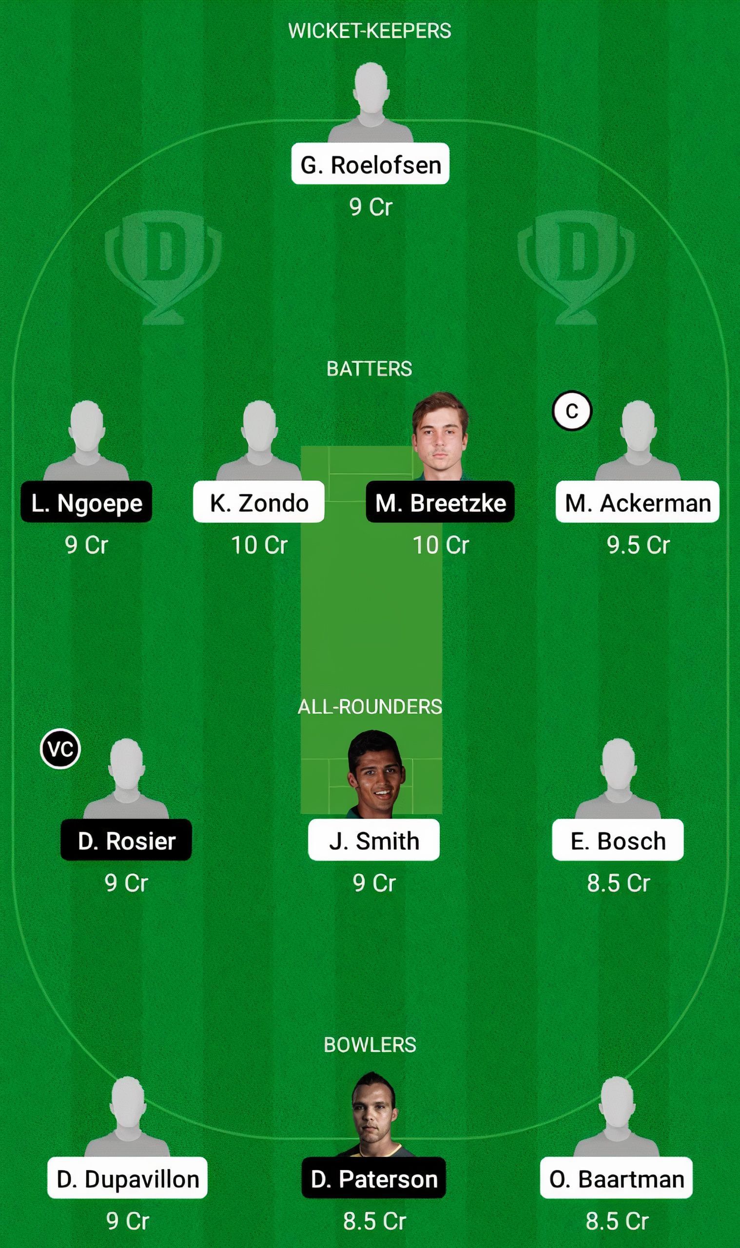 Fantasy Suggestion #1: Grant Roelofsen, Lesiba Ngoepe, Khaya Zondo, Matthew Breetzke, Marques Ackerman, Diego Rosier, Jason Smith, Eathan Bosch, Daryn Dupavillon, Dane Peterson, Ottniel Baartman.