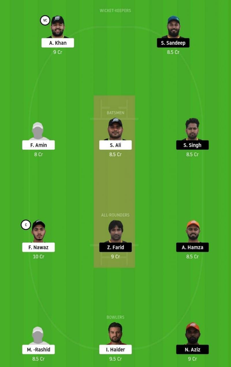 Fantasy Suggestion #1: A Khan, S Sandeep, F Amin, S Singh, S Ali, F Nawaz, A Hamza, Z Farid, N Aziz, M Rashid and I Haider