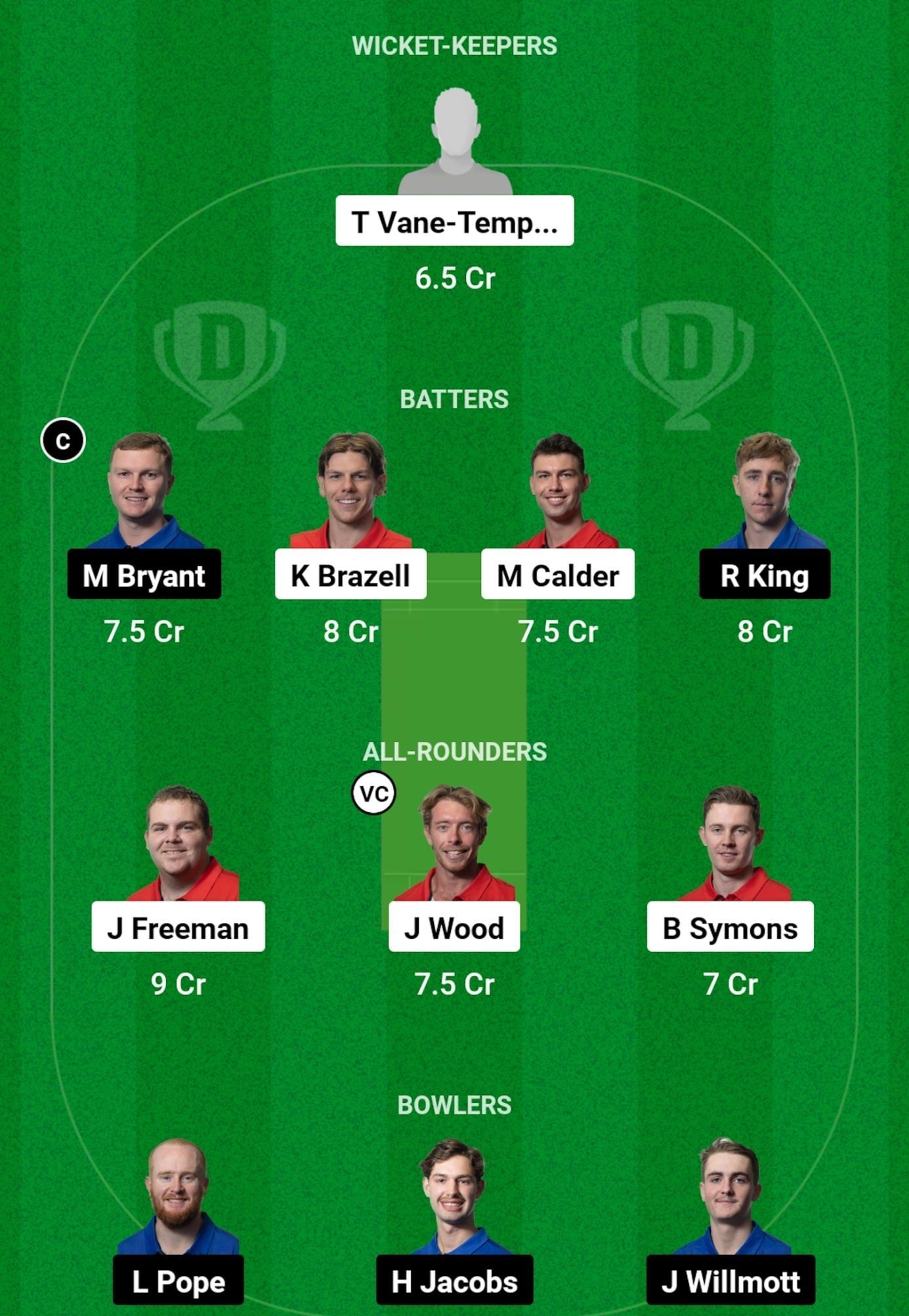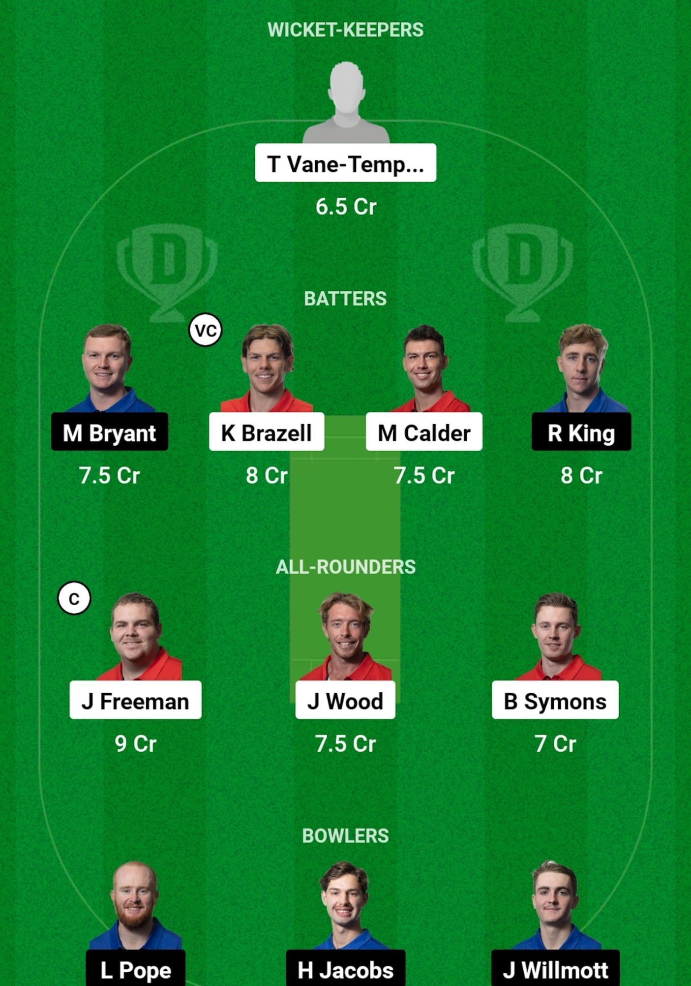 All-rounders: Jarrod Freeman, Jack Wood, B Symons