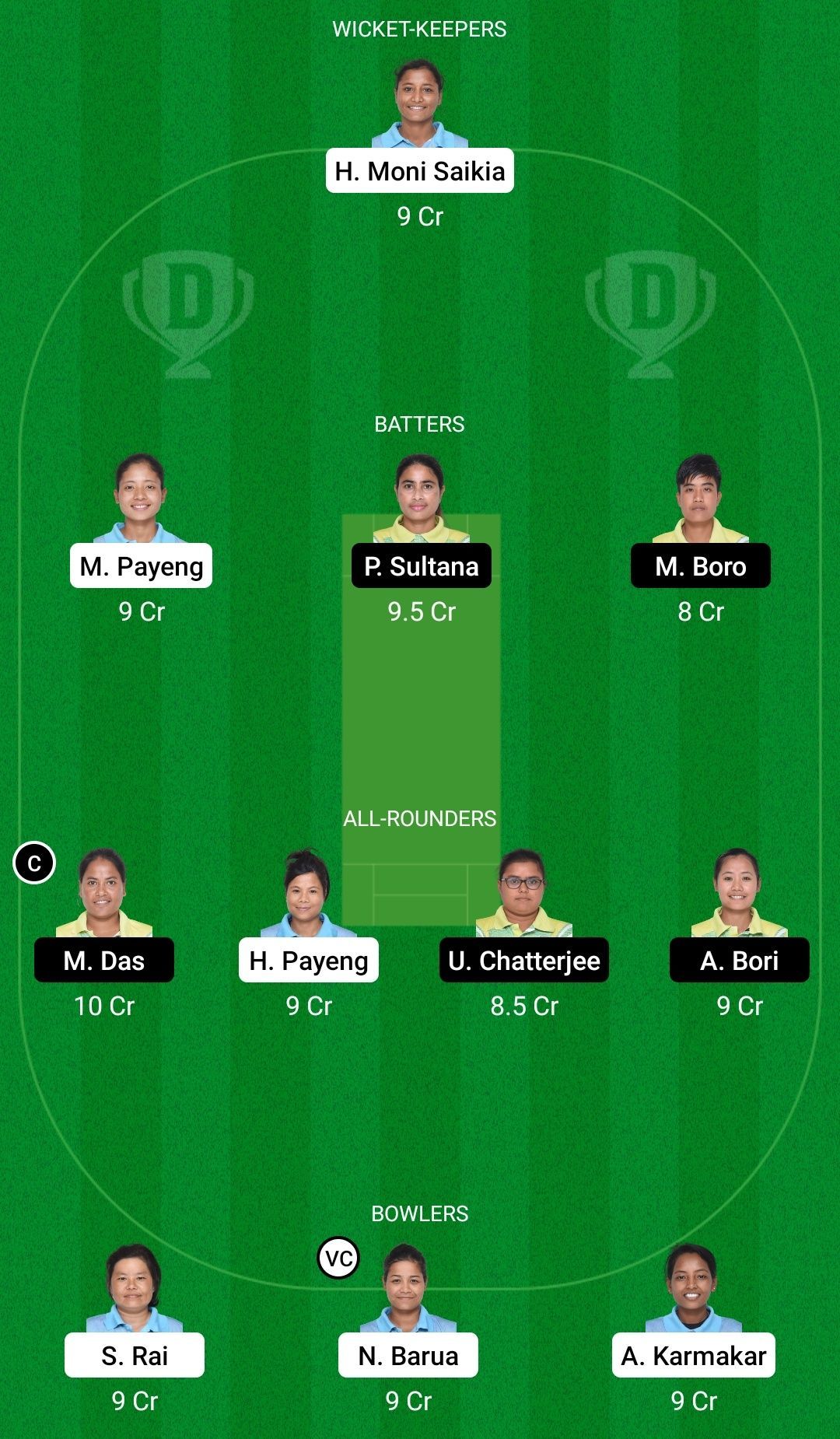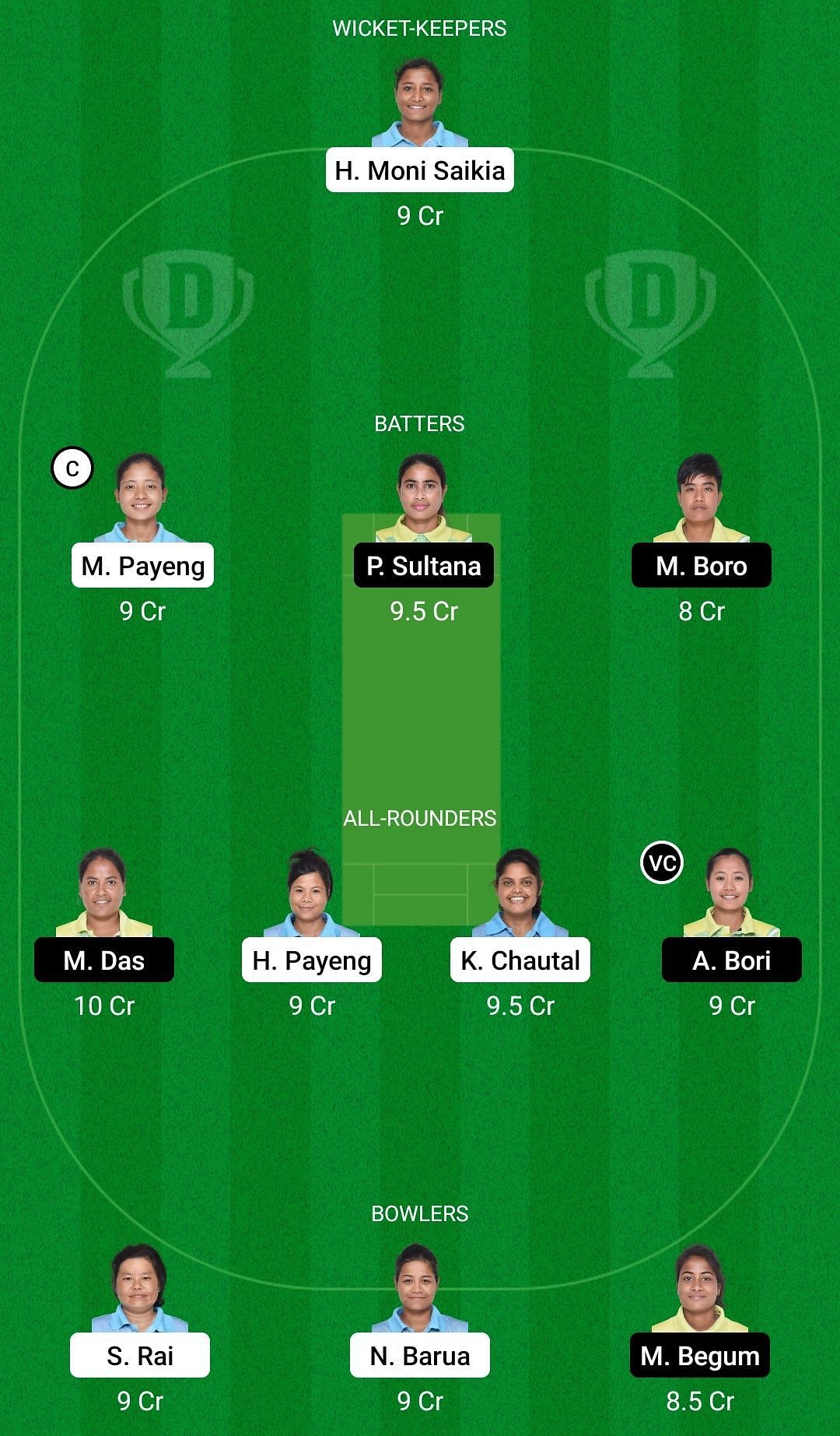 Dikhou Tigress Women: He Hemlata Payeng (c), Hira Moni Saikia (wk), Maini Payeng, Rujan Moni Bora, Sarala Sinha, Priyanshi Baruah, Kalpana Chautal, Shanti Rai, Nibedita Barua, Arpana Karmakar, Priyanka Kalita