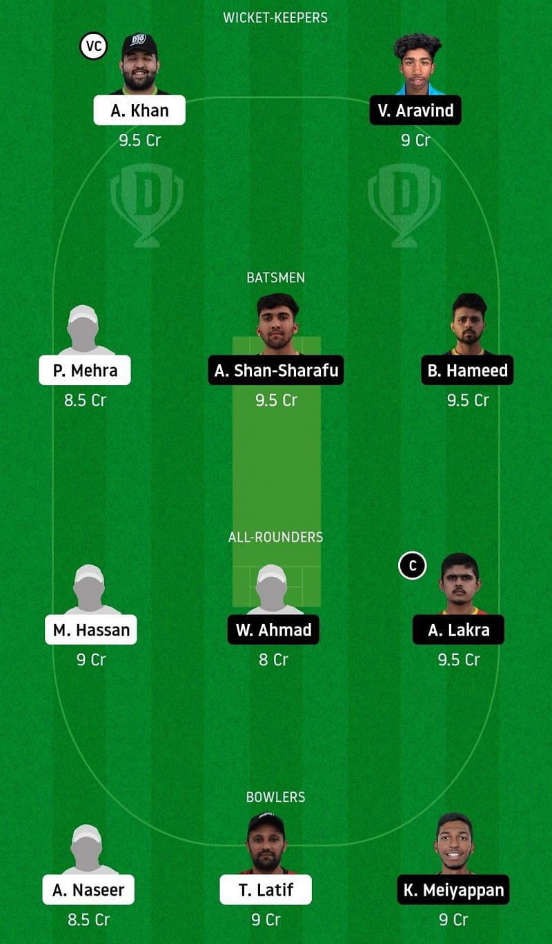 Fantasy Suggestion #1: Adnaan Khan, Vriitya Aravind, Punya Mehra, Alishan Sharafu, Basil Hameed, Muhammad Hassan, Waheed Ahmad, Aryan Lakra, Ali Naseer, Tahir Latif, Karthik Palaniapan Meiyappan.
