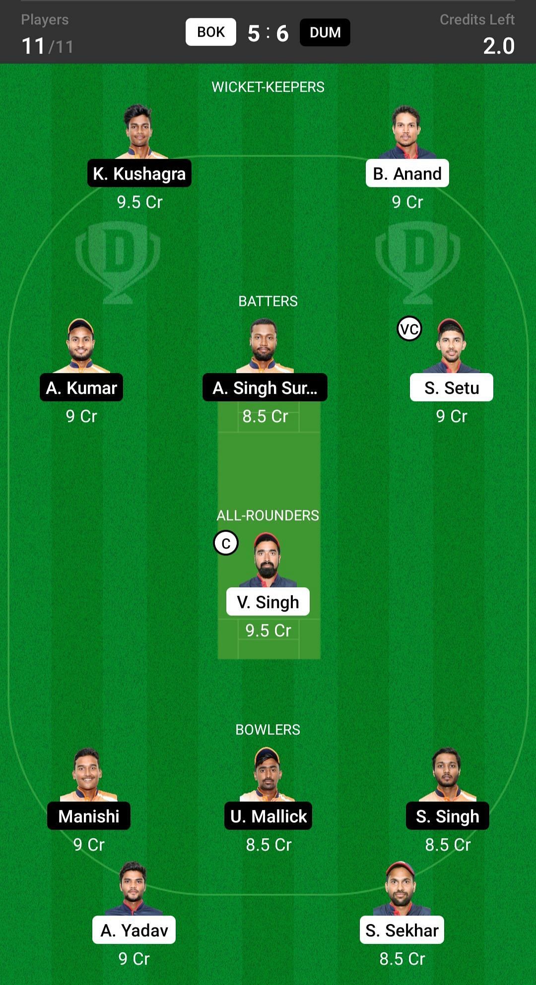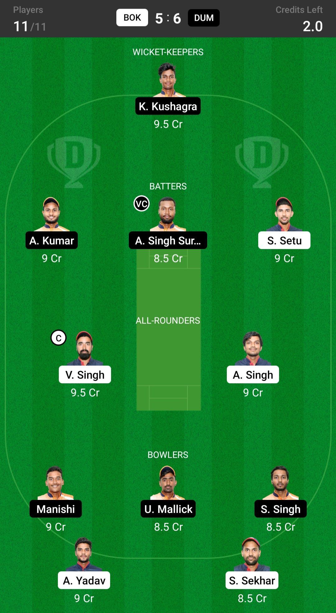 Fantasy suggestion #1: K Kushagra, A Kumar, A Singh, S Setu, V Singh, A Singh, Manishi, U Mallick, S Singh, A Yadav, S Sekhar