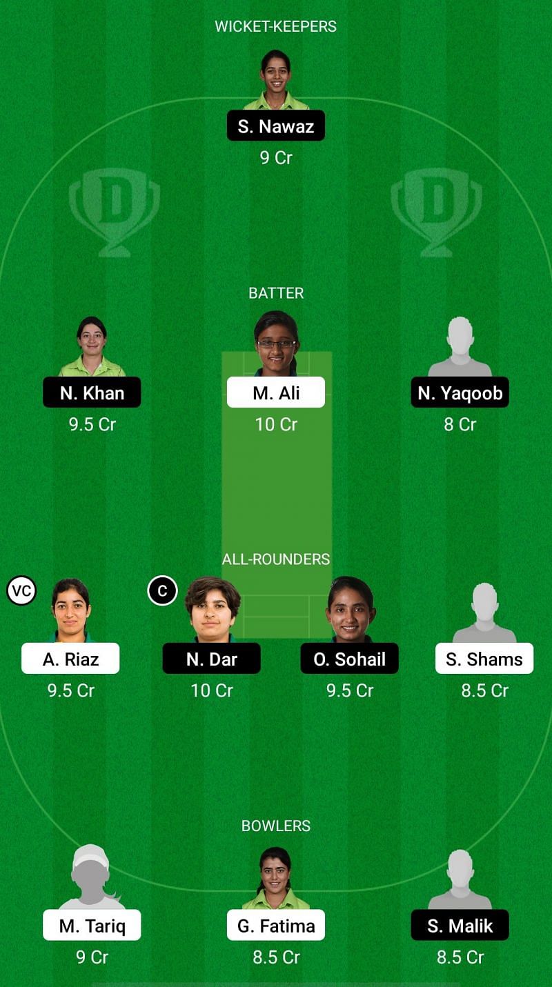Saima Malik: Malik has scalped two wickets in three matches at an economy rate of 3.12. She can be a good budget pick for this Pakistan Women's One-Day Cup game.