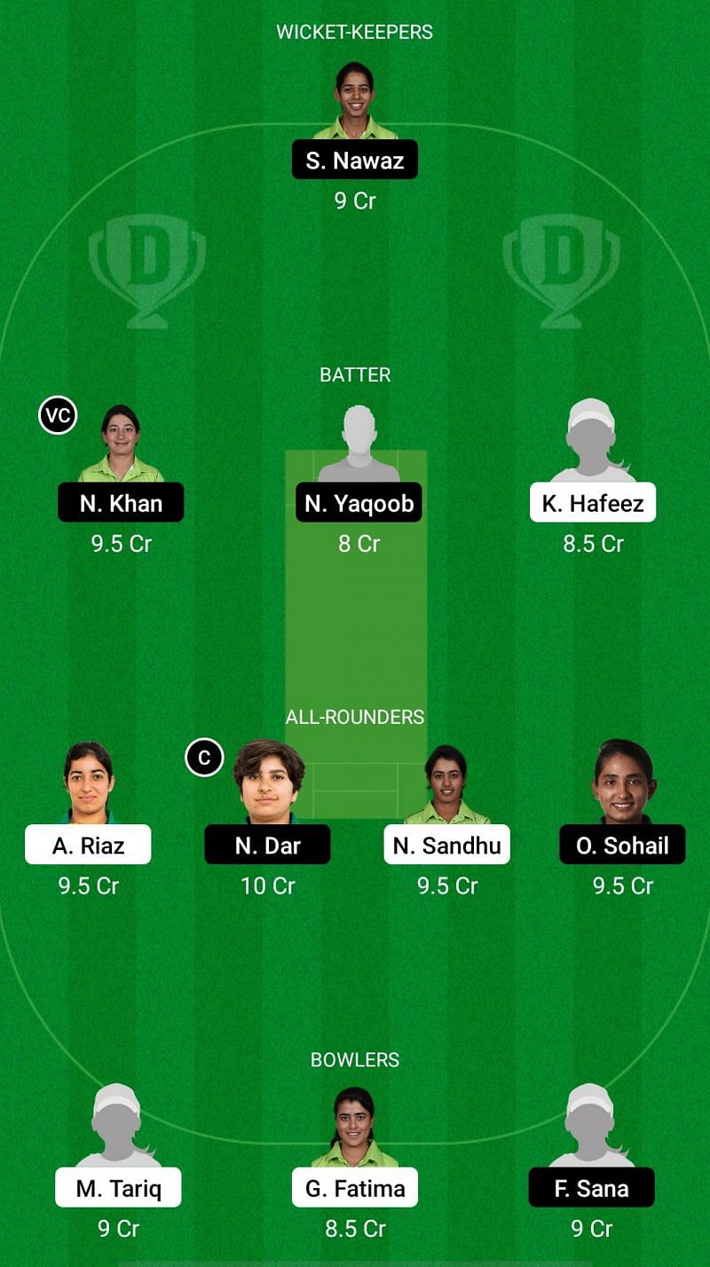 Fantasy Suggestion #1: Sidra Nawaz, Nahida Khan, Muneeba Ali, Noren Yaqoob, Aliya Riaz, Nida Dar, Omaima Sohail, Sadaf Shams, Maham Tariq, Ghulam Fatima, Saima Malik.