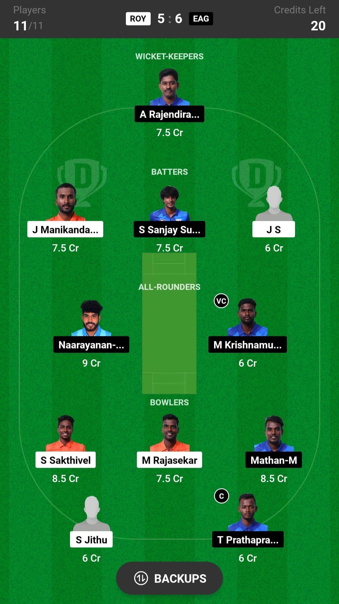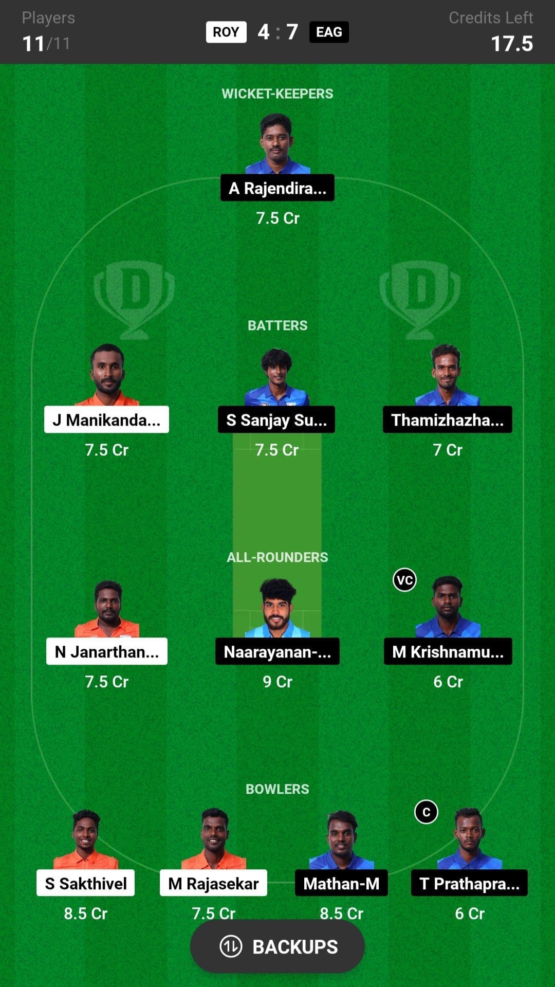 N Janarthanan and M Krishnamurthy are the best all-rounder picks for the Dream11 team as they are batting in the top order and also completing their quota of overs. Naarayanan KR is also a good pick for today's Dream11 team.