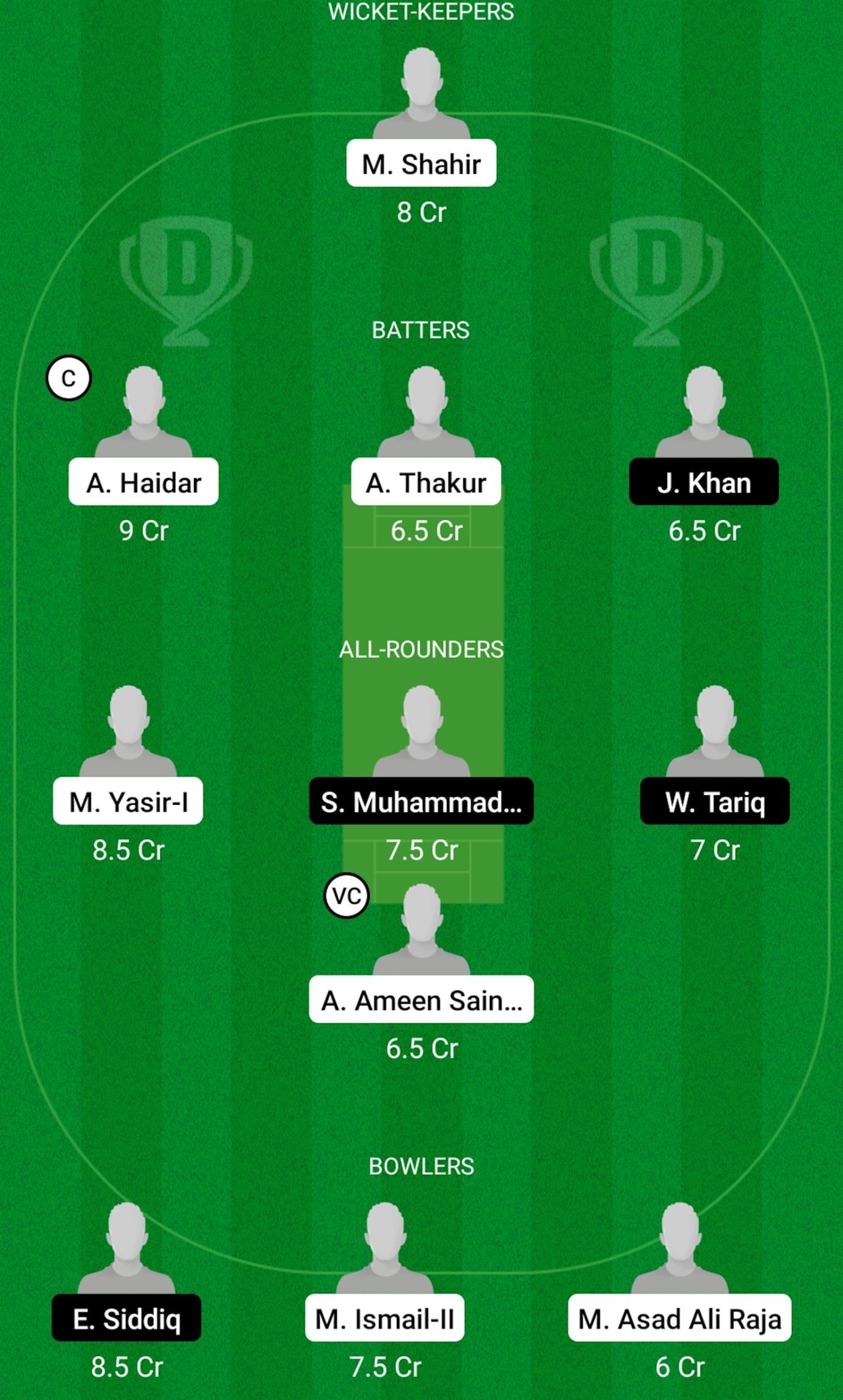 Muhammad Asad Ali Rajha can be a very effective bowler. He has the ability to pick up wickets at crucial junctures, which makes him the best bowler pick for the match.