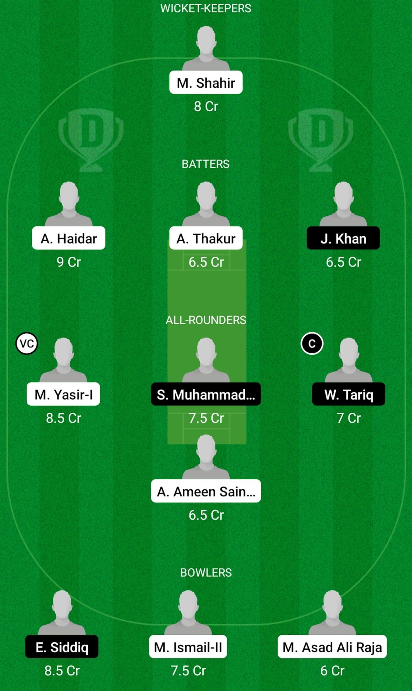 Akhlaq Haidar has been in good touch with the bat this tournament. He has scored heavily in the last two matches and this makes him the best batter pick for this match.