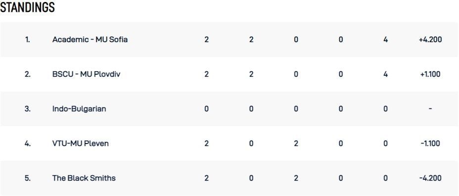 Indo-Bulgarian are yet to begin their campaign in the tournament. They will play their first couple of matches against VTU-MU Pleven on Tuesday.
