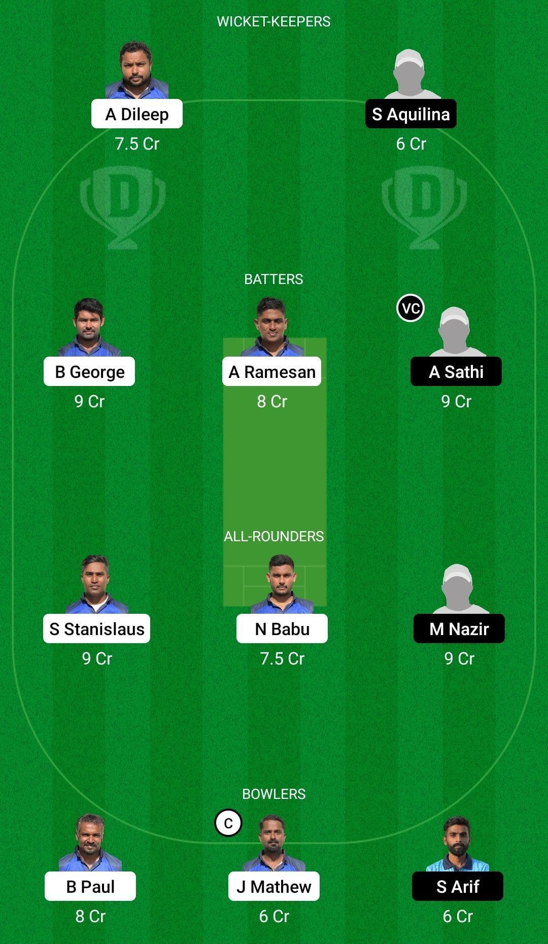 Both teams have some quality all-rounders and top-order batters in their ranks. The likes of Samuel Stanislaus, Nithin Babu, Michael Nazir, Basil George and Azeem Sathi could be the ones to watch out for in the EDK vs MTD match.
