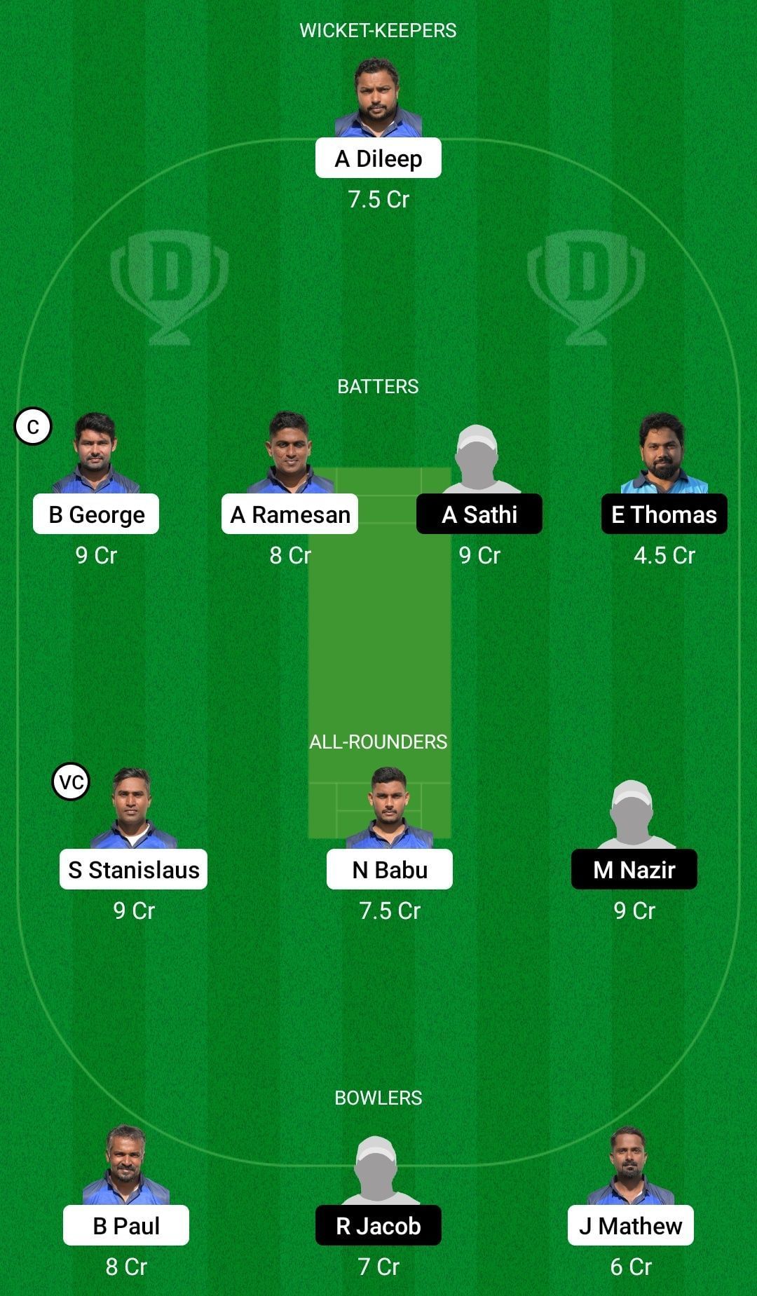 Edex Knights Probable Playing XI: Samuel Stanislaus, Basil George, Avinash Dileep (c & wk), Nithin Babu, Niyas Pullariyil, Bose Paul, Amal Babu, Akhil Scaria, Akashlal Ramesan, Ajay John, Jais Mathew.
