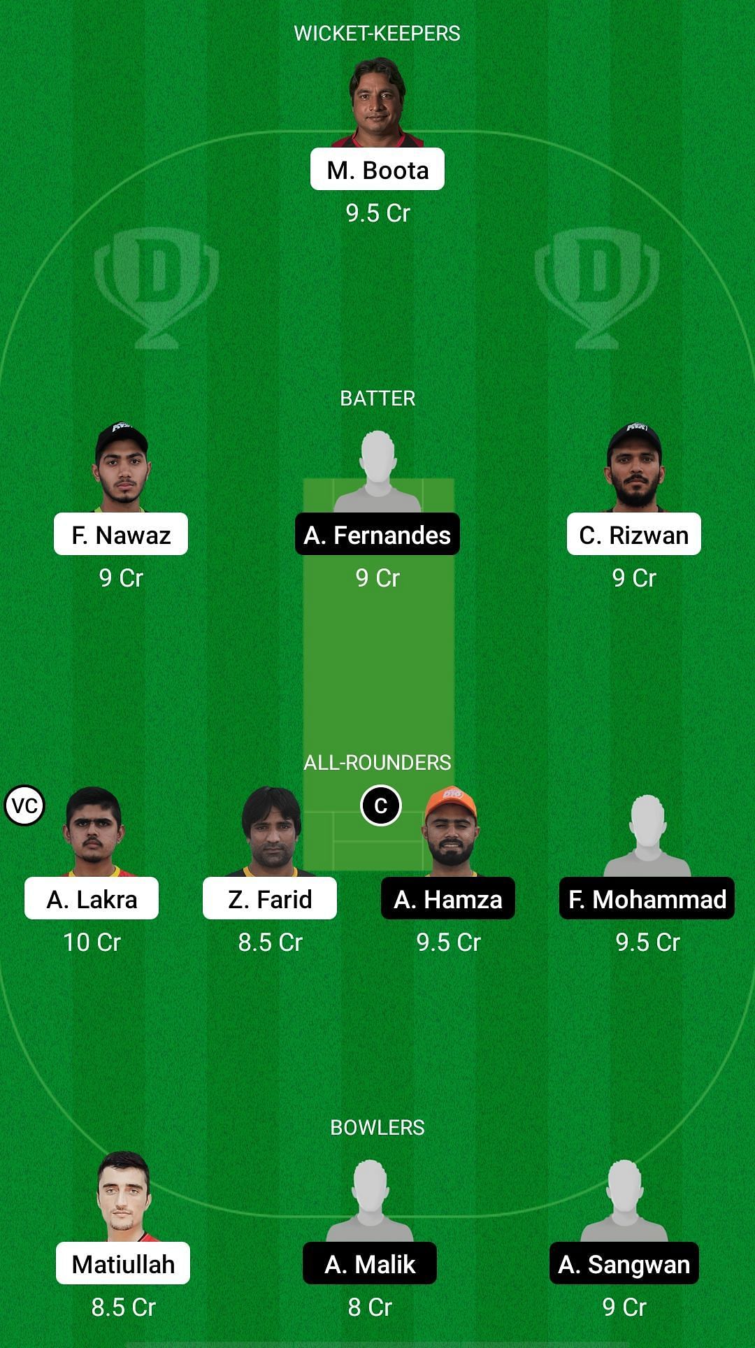 Fantasy Suggestion #1: Mohammad Boota, Fahad Nawaz, Chundangapoyil Rizwan, Ahaan Fernandes, Zawar Farid, Muhammad Farooq, Aryan Lakra, Ameer Hamza, Matiullah Khan, Abdul Malik, Ankur Sangwan.