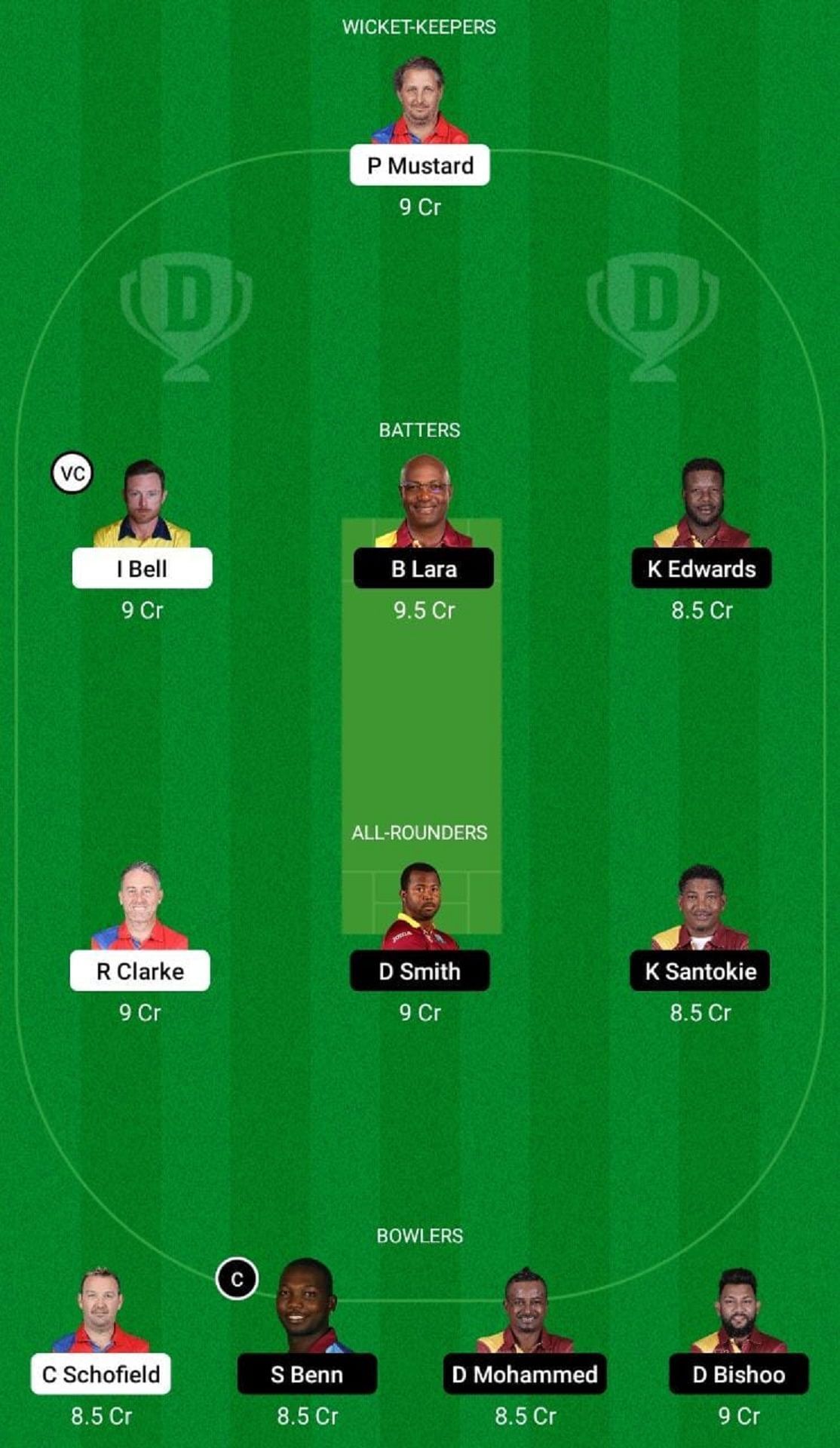 Suleiman Benn is the leader of the West Indies Legends bowling unit. In the previous match, he picked up two wickets at an economy rate of five runs per over.