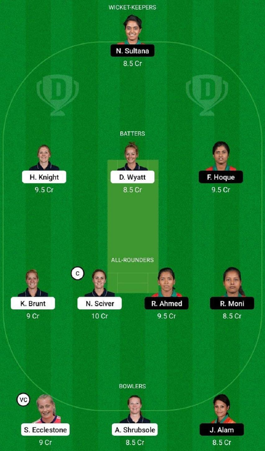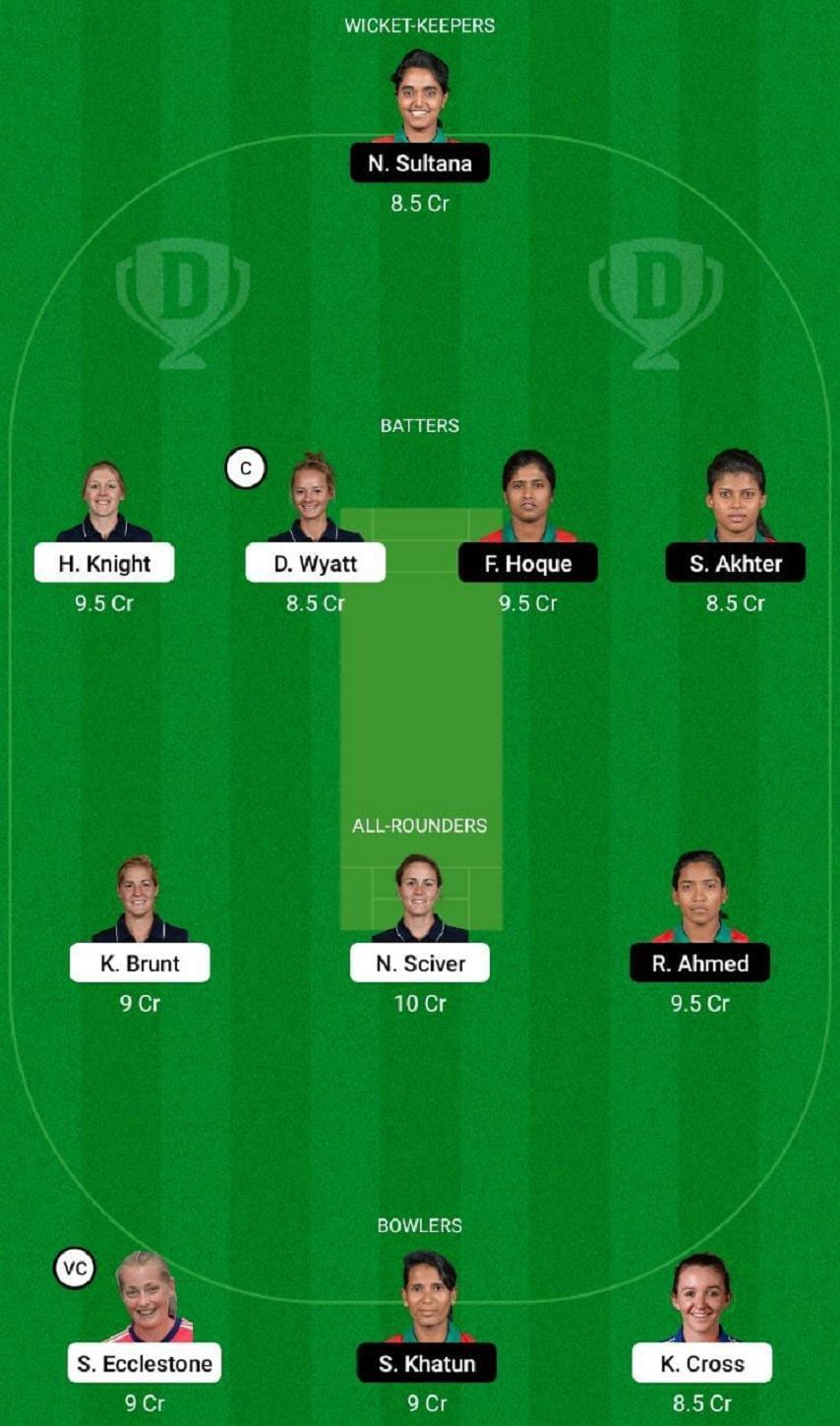 Fantasy Suggestion #1: Nigar Sultana, Heather Knight, Danielle Wyatt, Fargana Hoque, Sharmin Akhter, Katherine Brunt, Natalie Sciver, Rumana Ahmed, Sophie Ecclestone, Salma Khatun and Kate Cross.