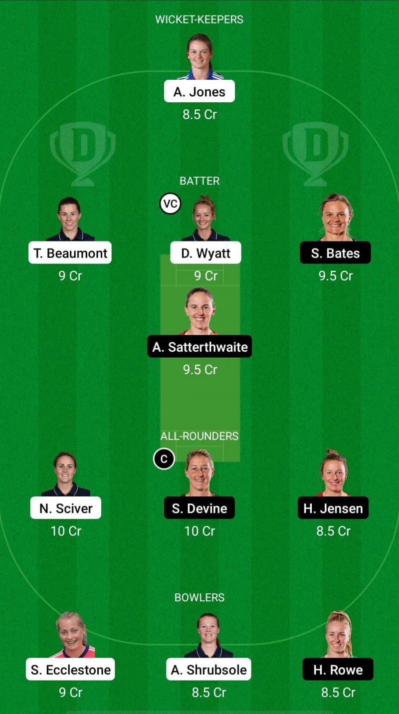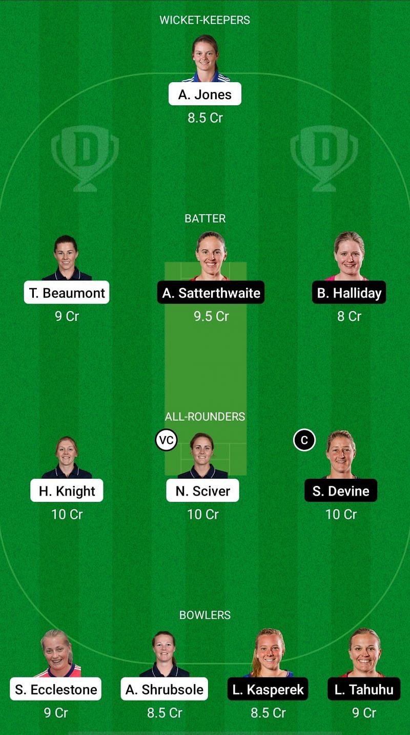 Fantasy Suggestion #1: Amy Ellen Jones, Tammy Beaumont, Amy Satterthwaite, Brooke Halliday, Heather Knight, Natalie Sciver, Sophie Devine, Sophie Ecclestone, Anya Shrubsole, Leigh Kasperek, Lea Tahuhu.