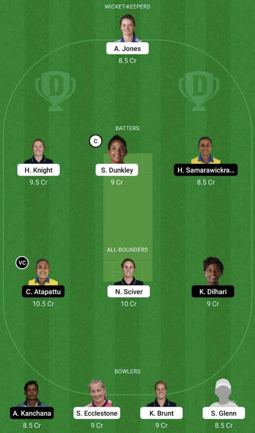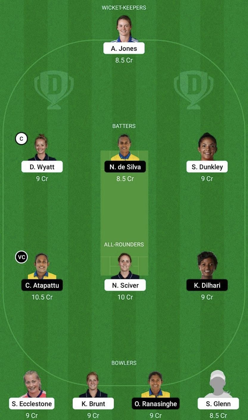Fantasy Suggestion #1: Amy Jones, Sophia Dunkley, Heather Knight, Harshitha Samarawickrama, Chamari Athapaththu, Natalie Sciver, Kavisha Dilhari, Ama Kanchana, Sophie Ecclestone, Katherine Brunt and Sarah Glenn
