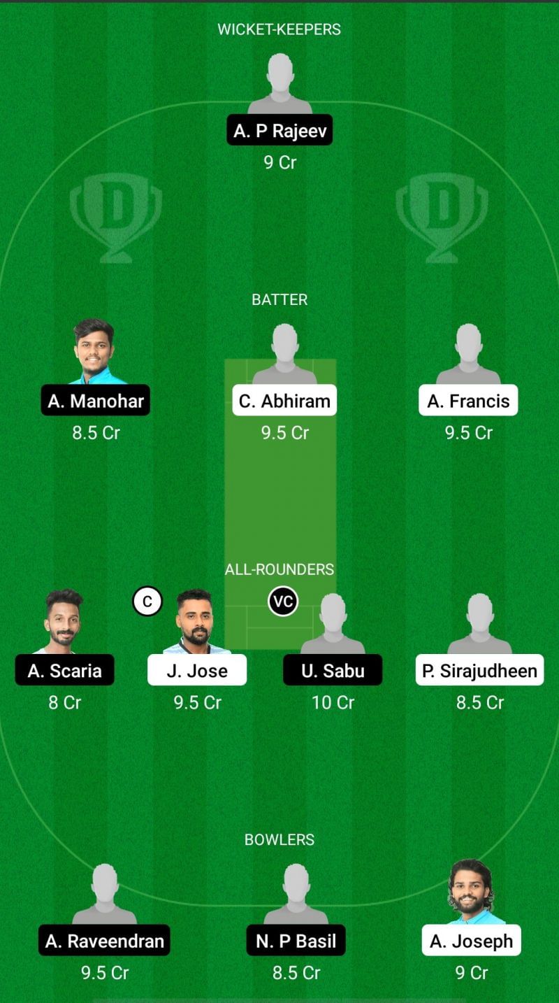 Fantasy Suggestion #1: AP Rajeevan, A Manohar, CH Abhiram, A Francis John, A Scaria, J Jose, U Sabu, PS Sirajudheen, A Raveendran, NP Basil, A Joseph.
