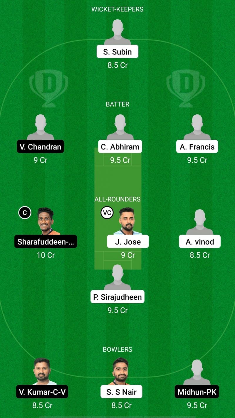 Fantasy Suggestion #1: S Subin, V Chandran, CH Abhiram, A Francis John, NM Sharafuddeen, J Jose, A Vinod, PS Sirajudheen, CV Vinod Kumar, SS Nair, PK Midhun.
