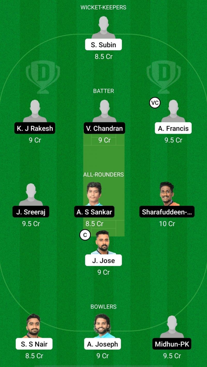 Fantasy Suggestion #2: S Subin, KJ Rakesh, V Chandran, A Francis John, JR Sreeraj, Aswanth S Sanker, NM Sharafuddeen, J Jose, SS Nair, A Joseph, PK Midhun.