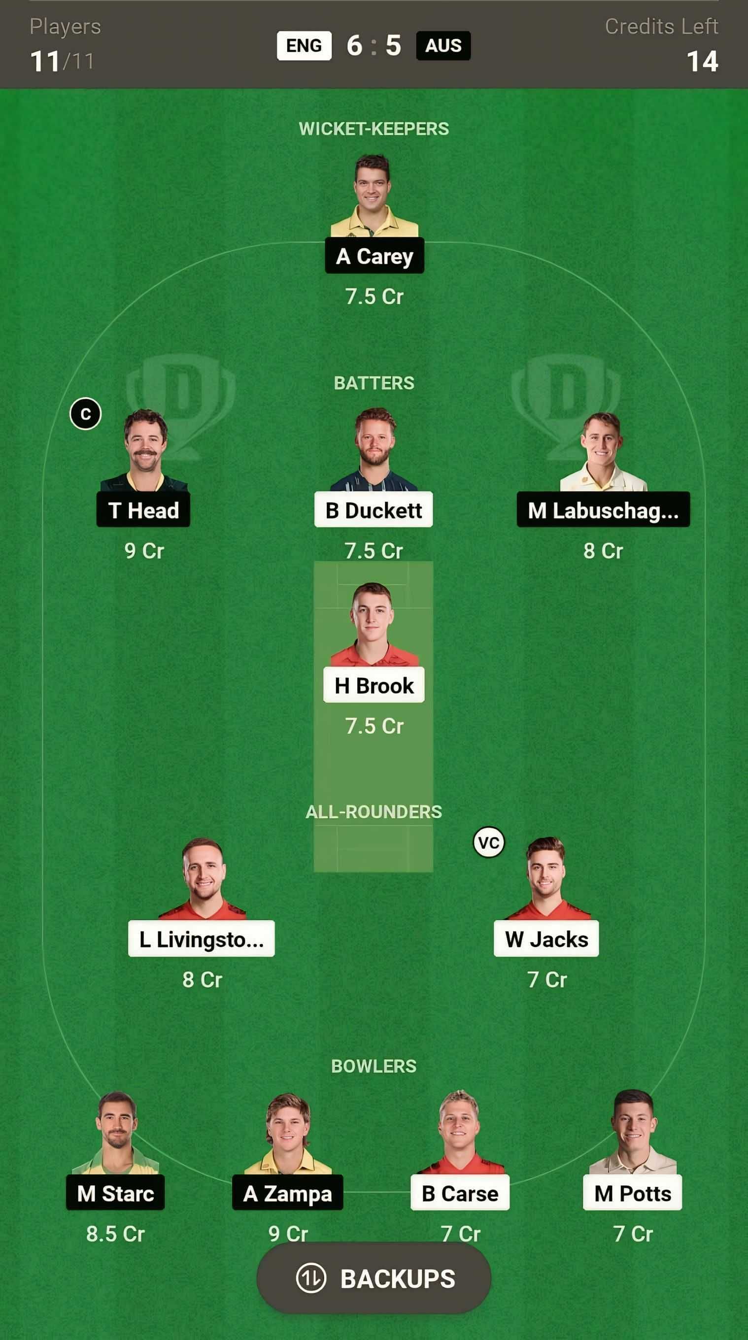 Batters: T Head, B Duckett, H Brook, M Labuschagne