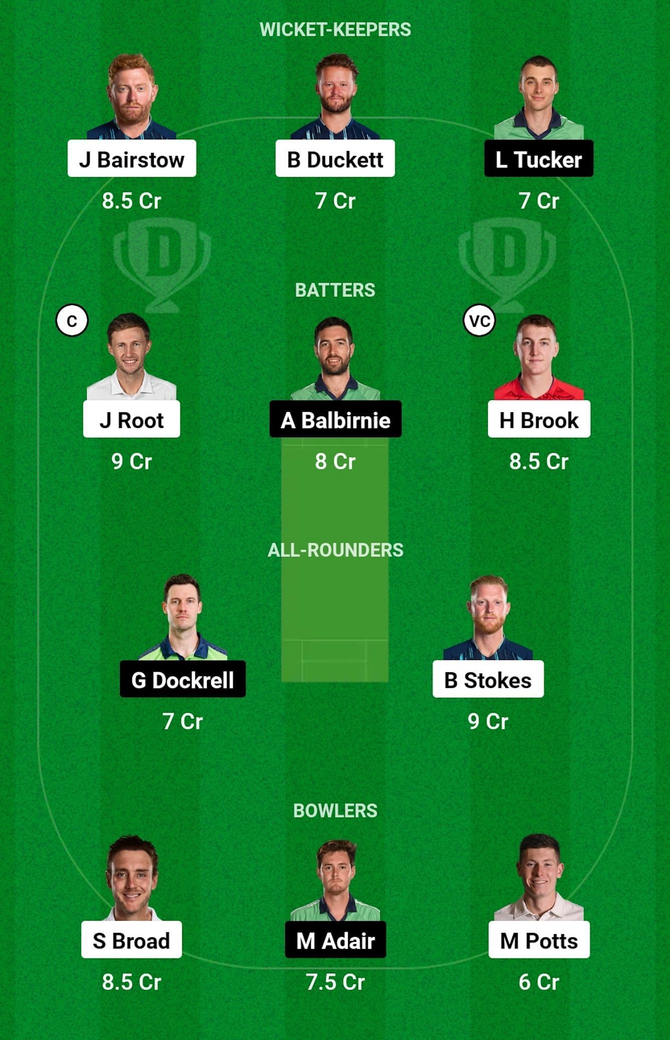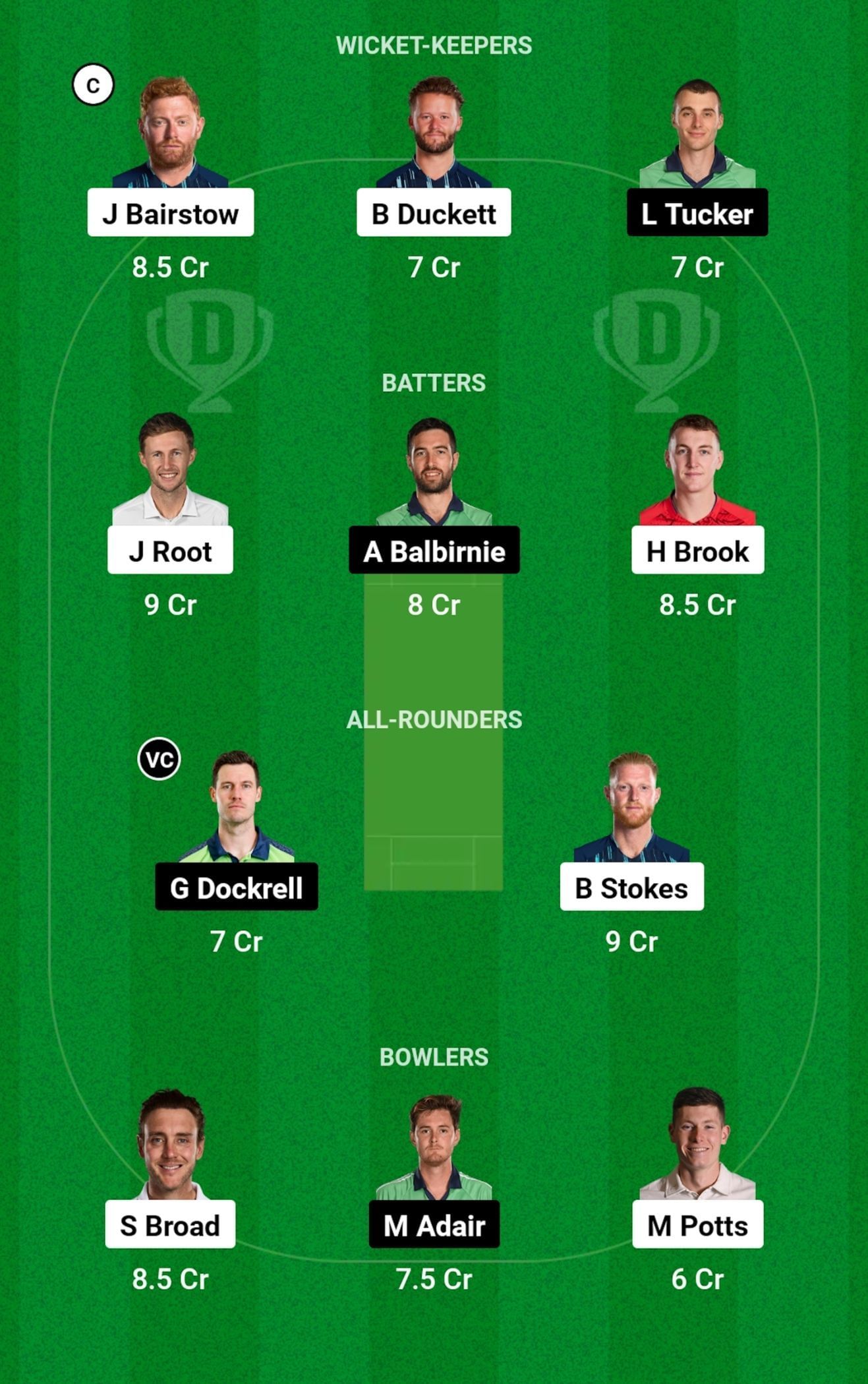 ENG vs IRE Dream11 Prediction, Only Test, Grand League Team