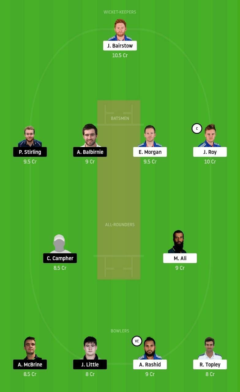Fantasy Suggestion #1: Jonny Bairstow, Jason Roy, Eoin Morgan, Andrew Balbirnie, Paul Stirling, Moeen Ali, Curtis Campher, Andy McBrine, Joshua Little, Adil Rashid and Reece Topley