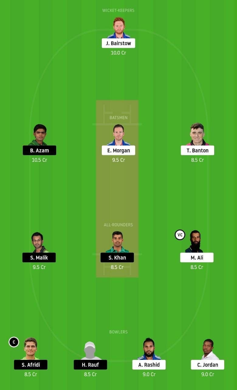 Fantasy Suggestion #1: Jonny Bairstow, Babar Azam, Eoin Morgan, Tom Banton, Shoaib Malik, Shadab Khan, Moeen Ali, Shaheen Afridi, Haris Rauf, Adil Rashid and Chris Jordan