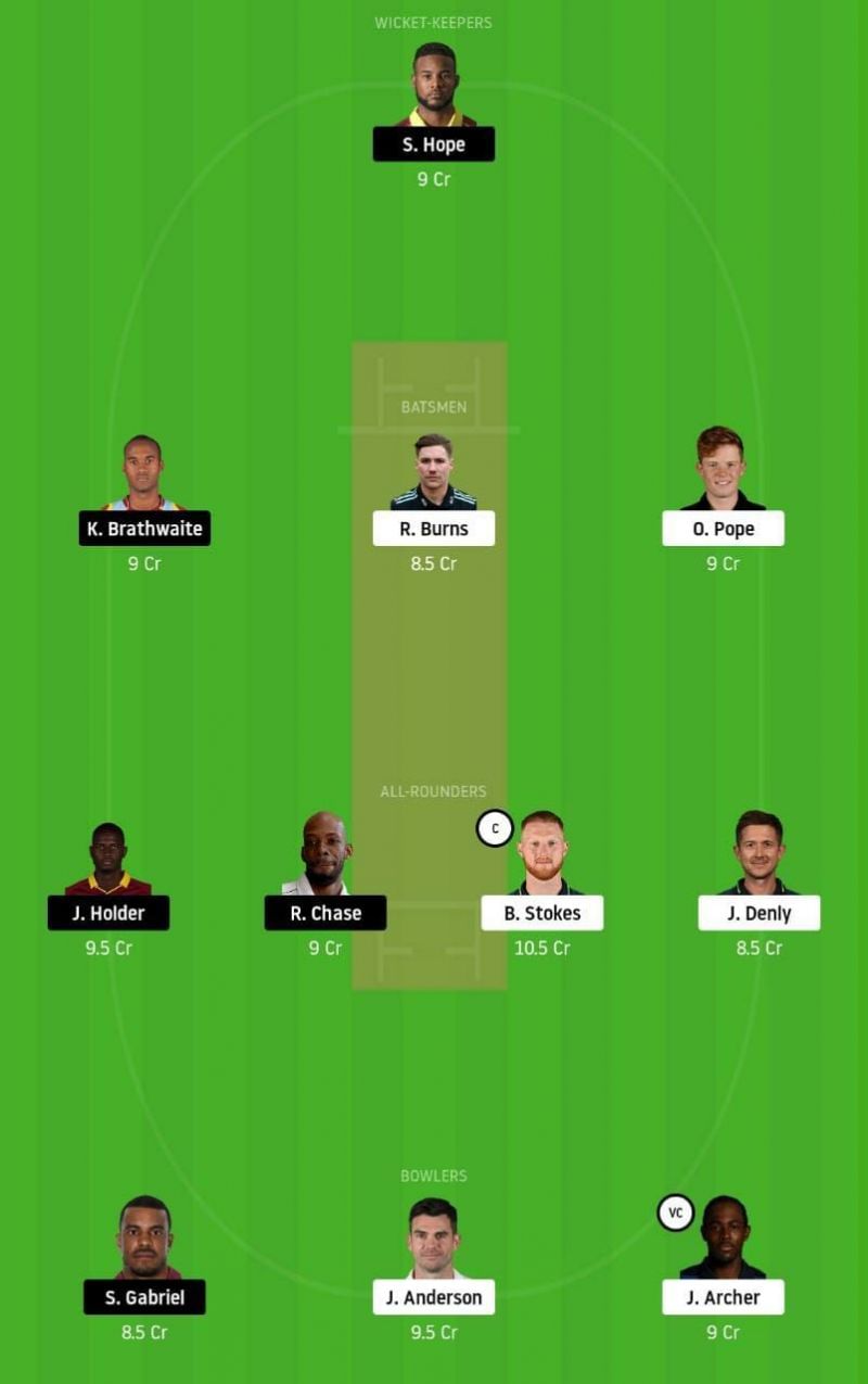 Fantasy Suggestion #1: Shai Hope, Kraigg Brathwaite, Ollie Pope, Rory Burns, Jason Holder, Ben Stokes, Roston Chase, James Anderson, Jofra Archer, Shannon Gabriel and Joe Denly