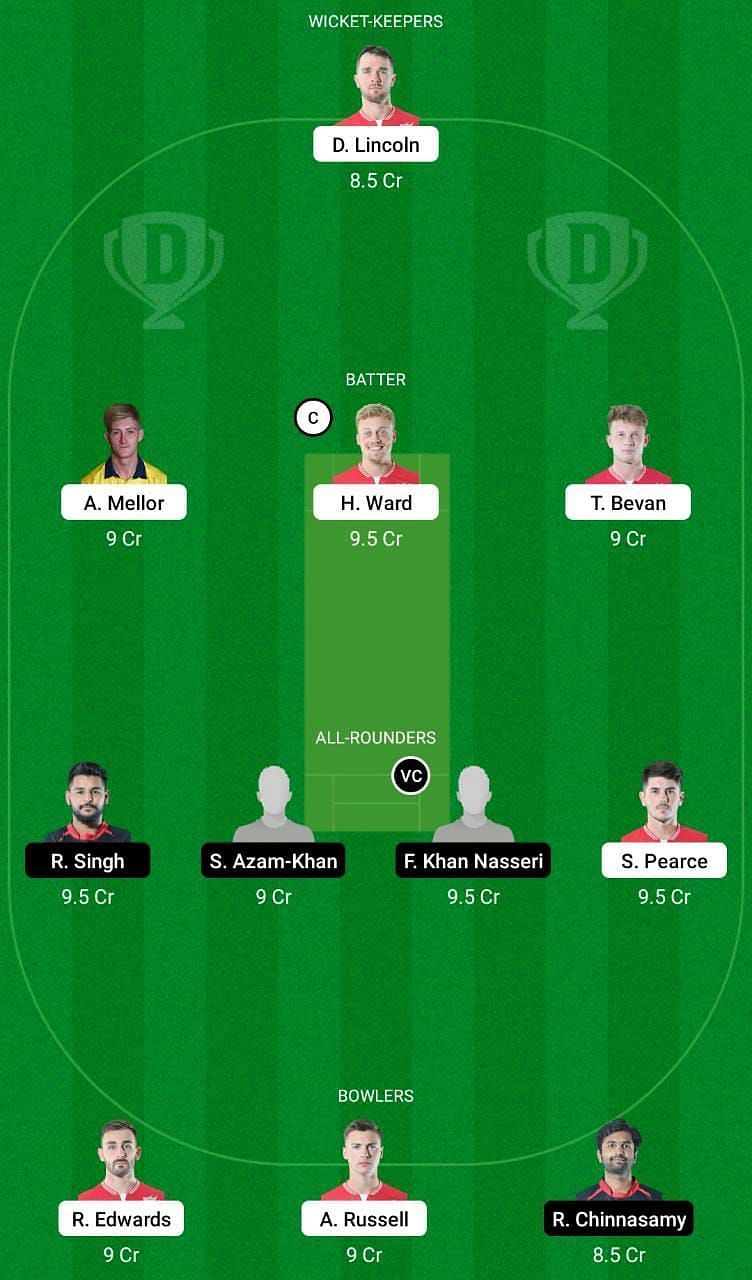 Fantasy Suggestion #2: D Lincoln, T Bevan, A Mellor, F Khan Nasseri, H Ward, R Singh, S Azam, S Pearce, A Russell, R Edwards and R Chinnasamy