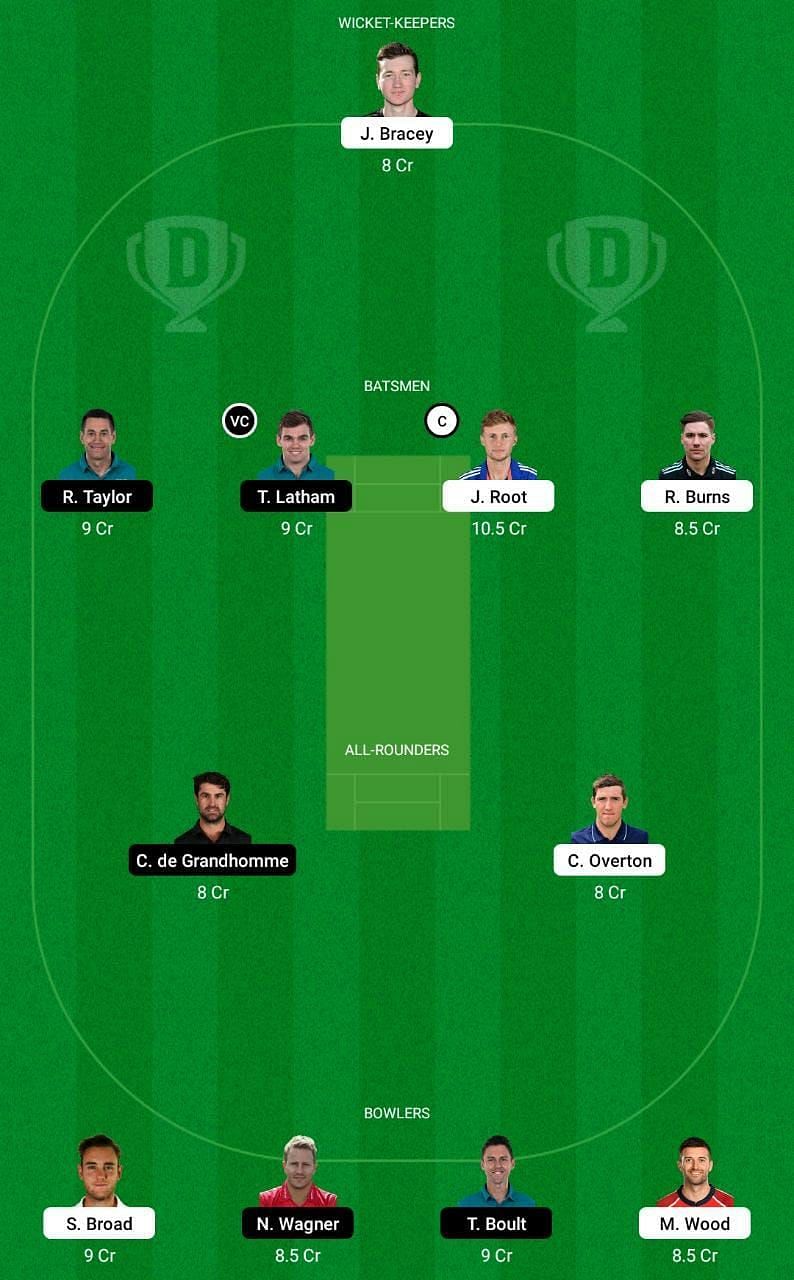 Fantasy Suggestion #1: James Bracey, Ross Taylor, Tom Latham, Joe Root, Rory Burns, Colin de Grandhomme, Craig Overton, Stuart Broad, Neil Wagner, Trent Boult and Mark Wood