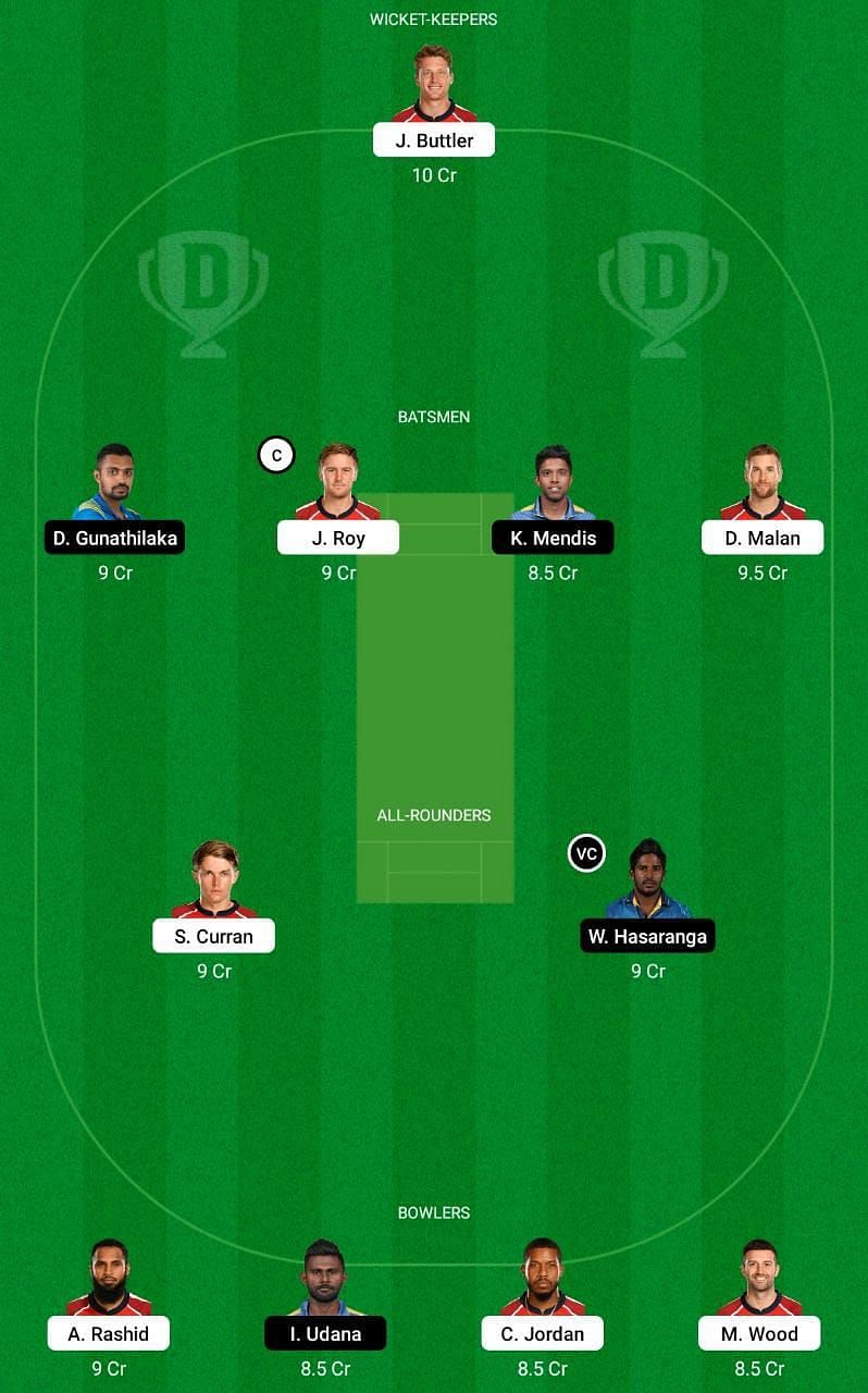 Fantasy Suggestion #1: J Buttler, J Roy, D Gunathilaka, K Mendis, D Malan, W Hasaranga, S Curran, A Rashid, C Jordan, I Udana and M Wood