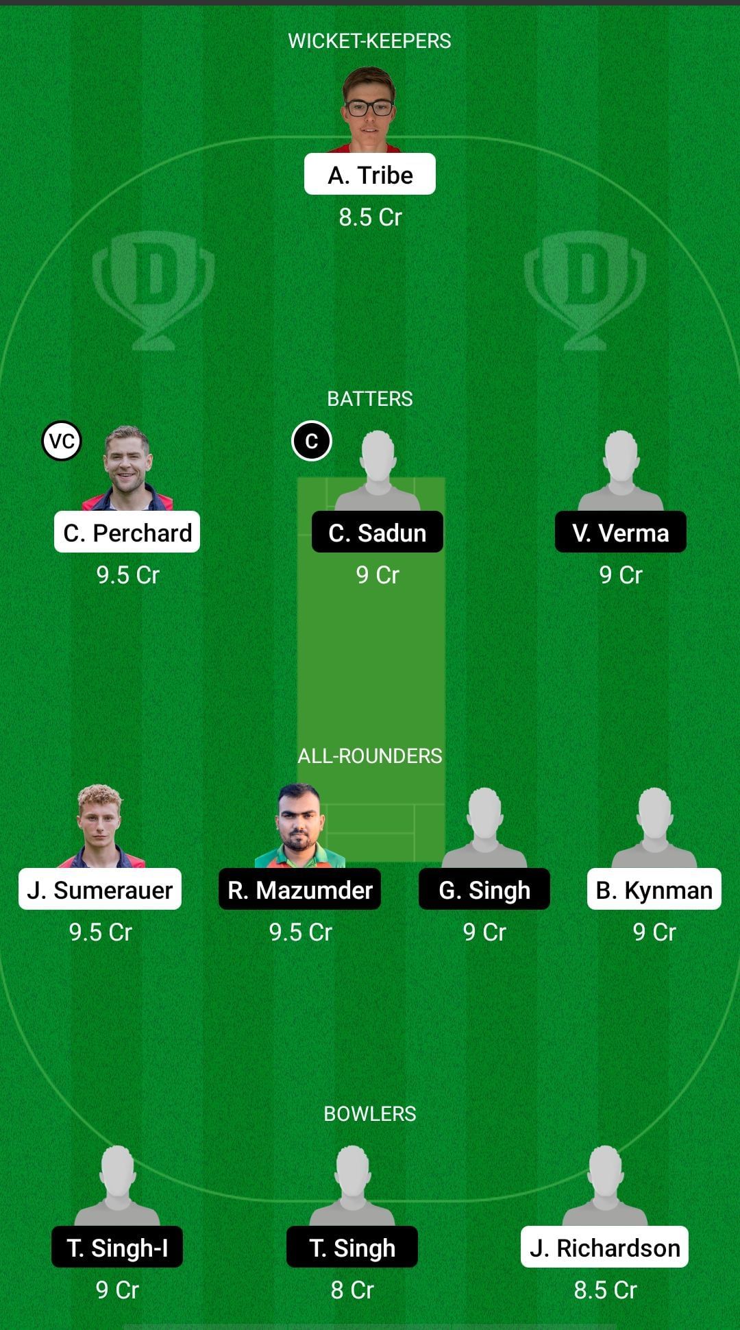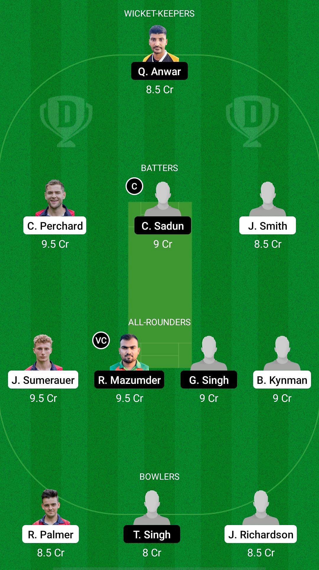 Fantasy Suggestion #1: Asa Tribe, Charles Perchard, Chamal Sadun, Vikram Verma, Julius Sumerauer, Roman Mazumder, Gurapartap Singh, Ben Kynman, Taranjit Singh, Tejwinder Singh, Joel Richardson.