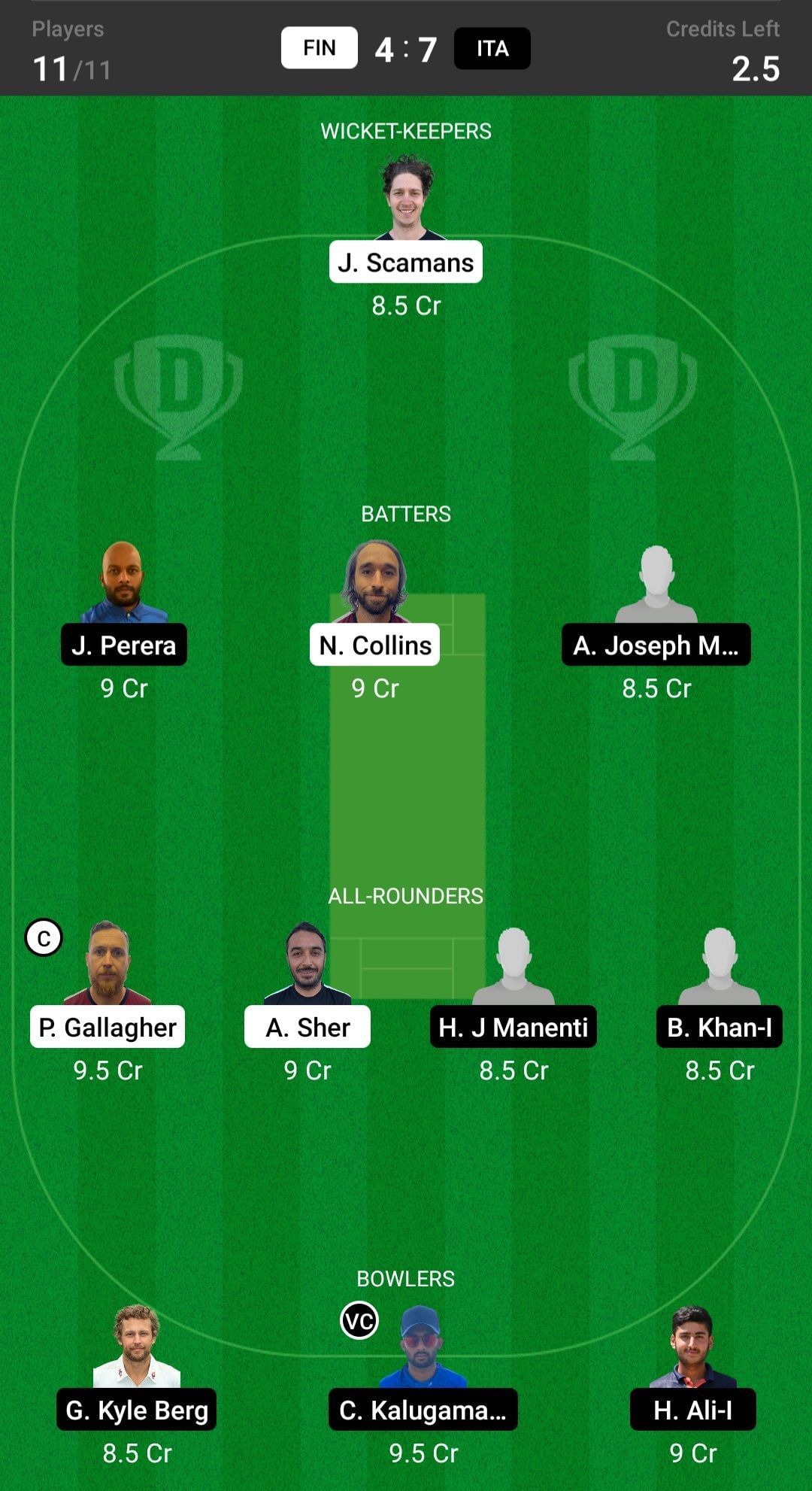 Fantasy suggestion #2: J Scamans, A Joseph, J Perera, N Collins, P Gallagher, A Sher, B Khan, G Kyle, N Shahid, H Ali, C Kalugamage
