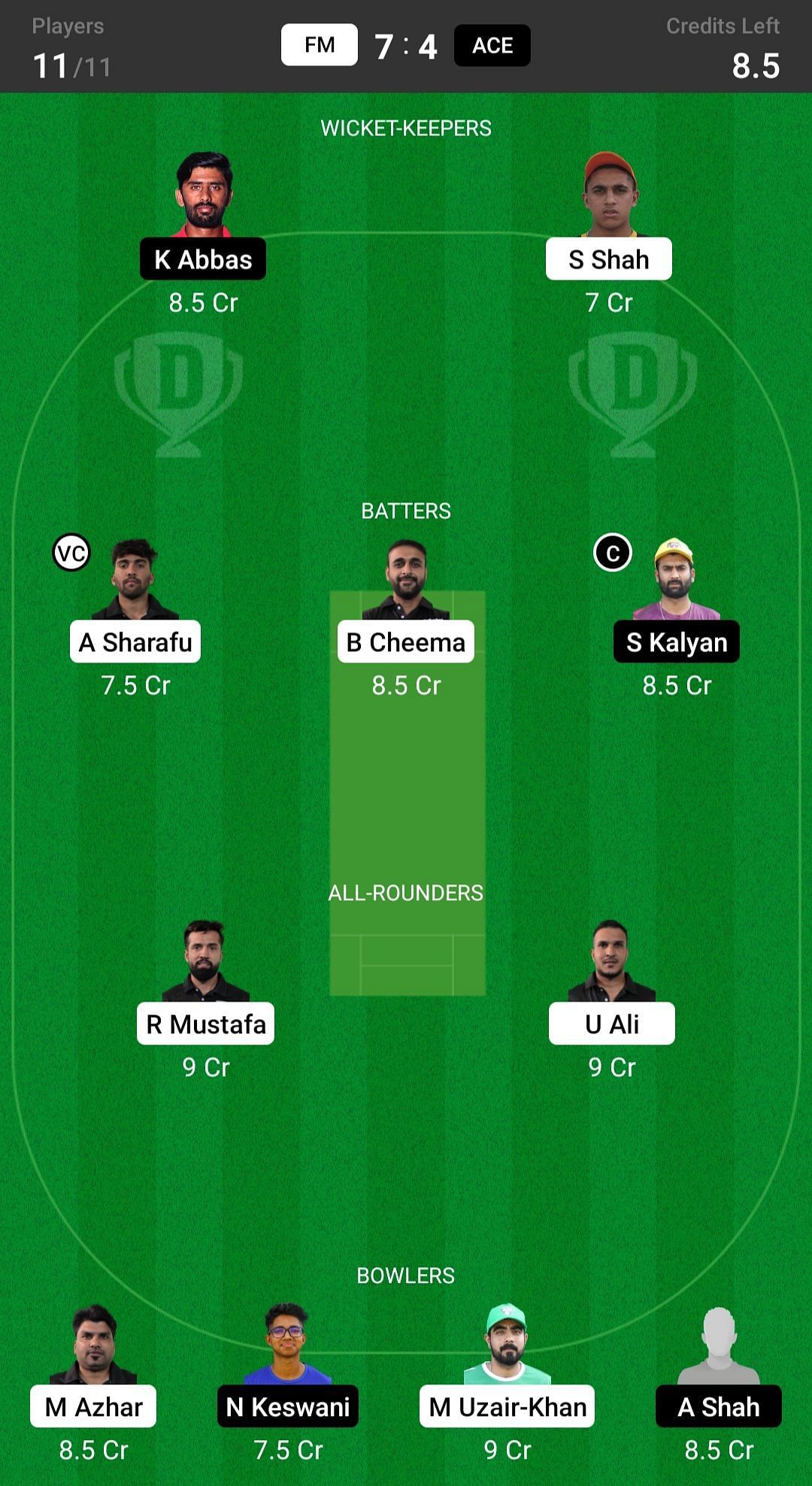 Future Mattress (FM) will lock horns with the 11 Aces (ACE) in match 12 of the Dubai D10 Division 1 on Wednesday (November 2) at the ICC Academy Stadium in Dubai.