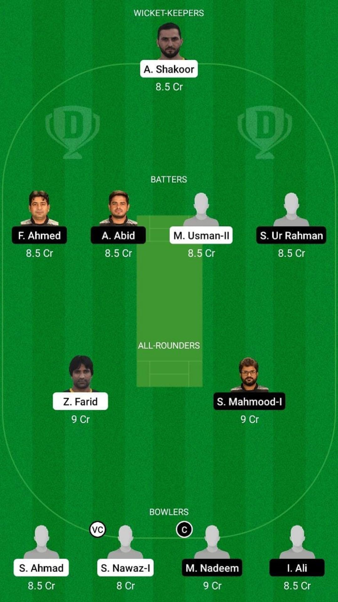 Fantasy Suggestion #2: A Shakoor, F Ahmed, M Usman, A Abid, S Ur Rahman, A Sharafu, S Mahmood, Z Farid, M Nadeem, S Nawaz, S Ahmad.