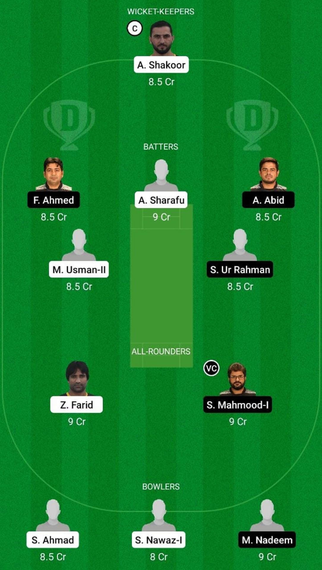 Fantasy Suggestion #1: A Shakoor, F Ahmed, M Usman, A Abid, S Ur Rahman, S Mahmood, Z Farid, M Nadeem, S Nawaz, I Ali, S Ahmad.