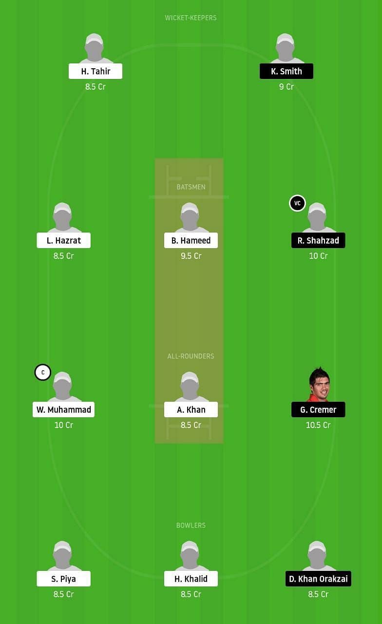 Fantasy Suggestion #1: K Smith, H Tahir, R Shahzad, L Hazrat, B Hameed, W Muhammad, A Khan, G Cremer, D Khan, S Piya and H Khalid