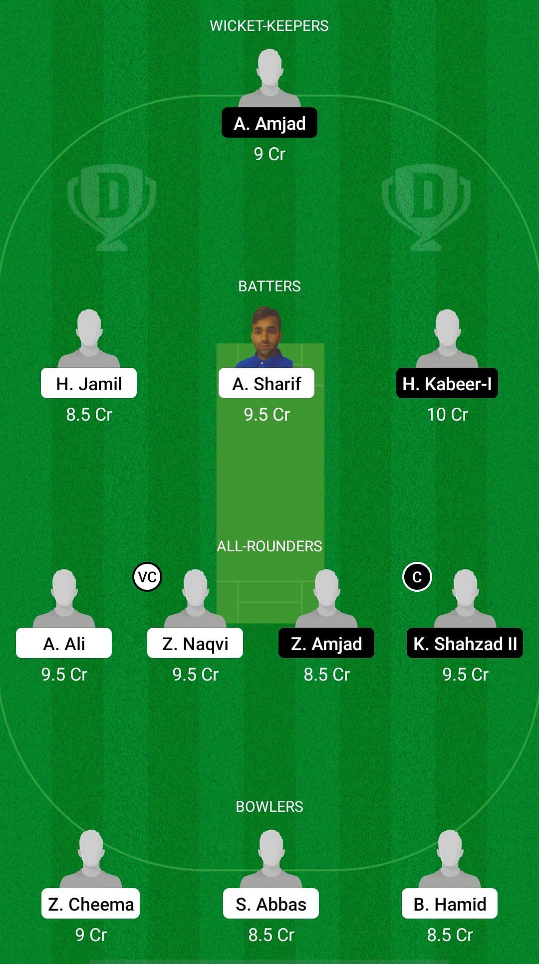 Captain: Khurram Shahzad. Vice-captain: Zain Naqvi.
