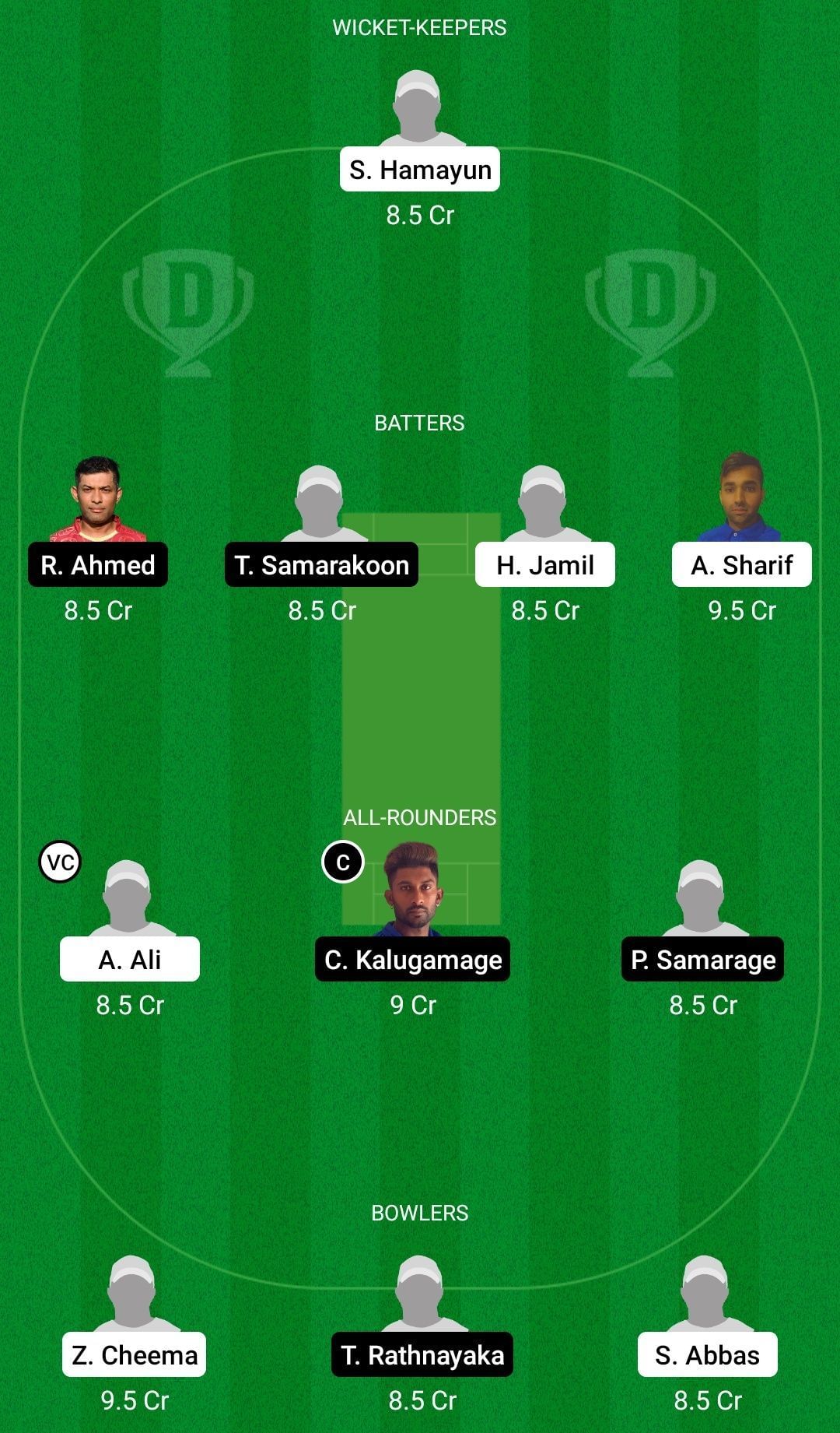Fantasy Suggestion #2: Shahzad Hamayun, Rahat Ahmed, Thushara Samarakoon, Hassan Jamil, Amir Sharif, Asim Ali, Crishan Kalugamage, Pruthuvi Samarage, Zahid Cheema, Thilina Rathnayaka, Sikandar Abbas.