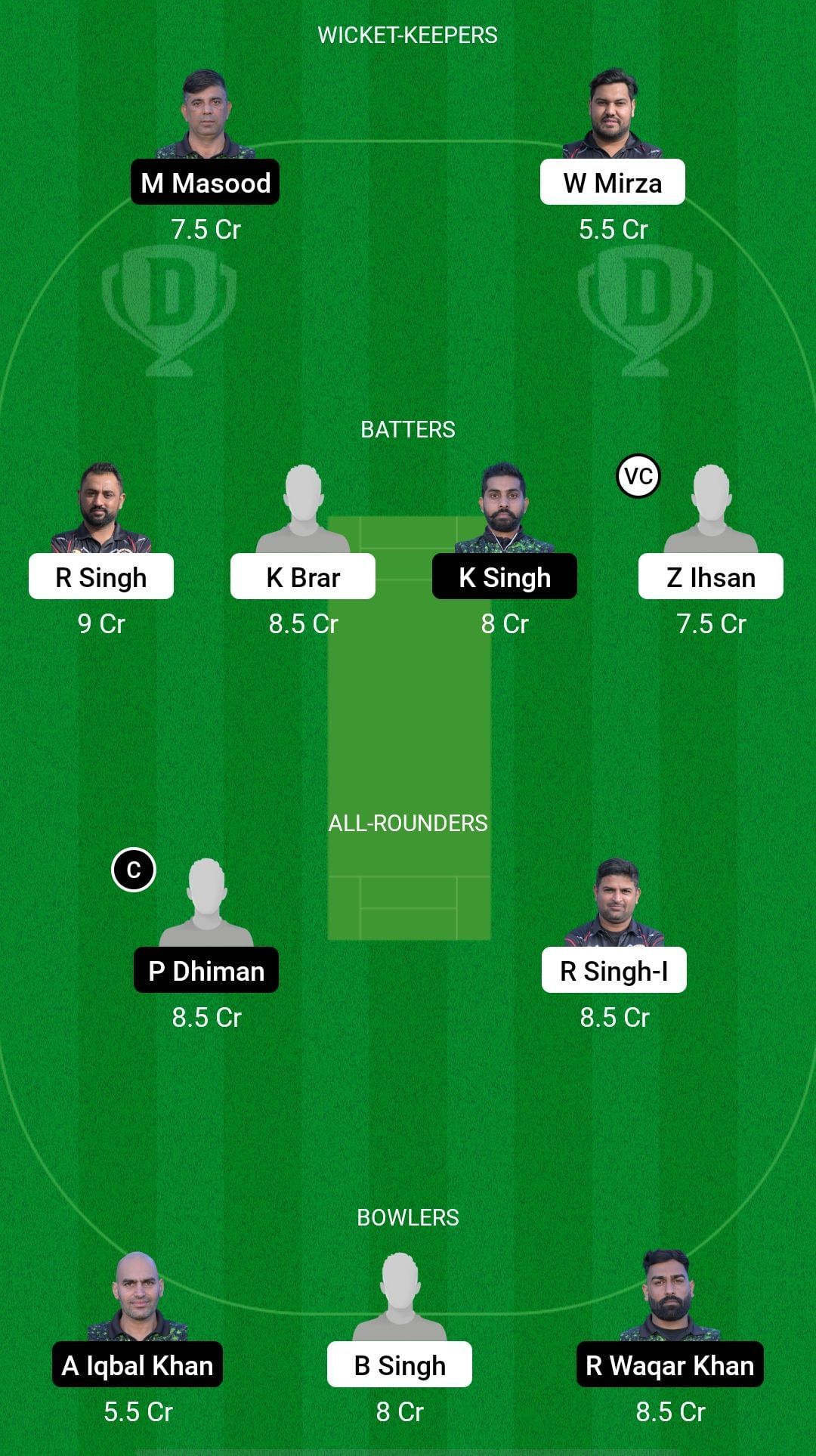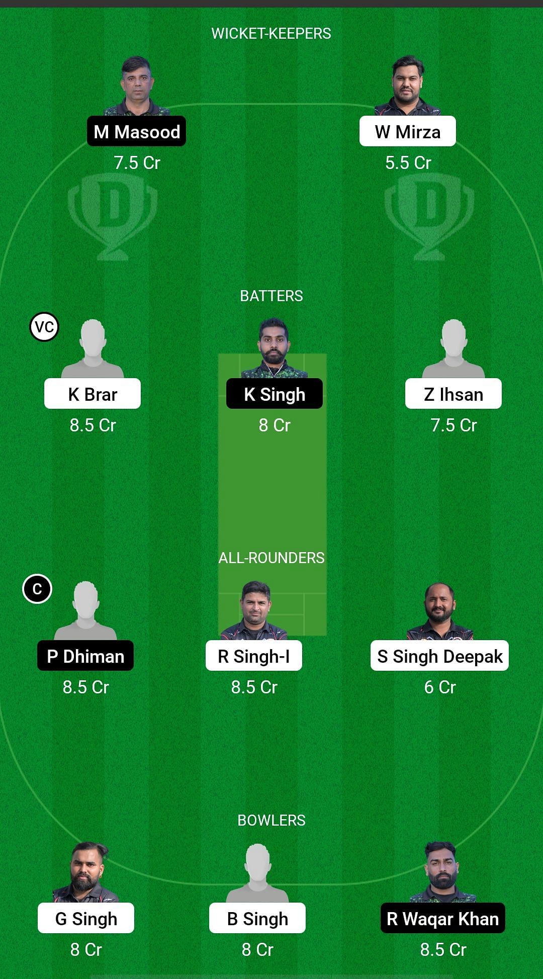 Waqar Zafar Mirza is a safe bet for the wicket-keeper's position, having consistently contributed with the bat in the middle order. He has scored 74 runs at a strike rate of 211.43 in four games and will be looking to get a decent score in this match.