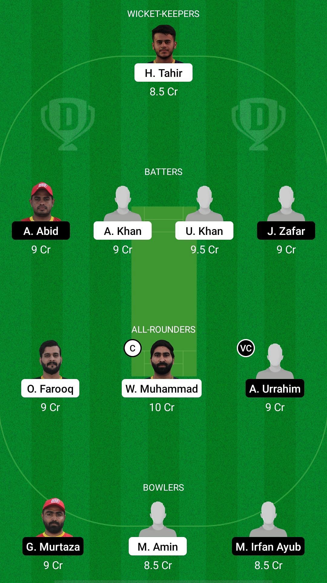 Fantasy Suggestion #1: Hamdan Tahir, Ali Abid, Asif Khan, Usman Khan, Jamshaid Zafar, Omer Farooq, Waseem Muhammad, Attah Urrahim, Ghulam Murtaza, Mujahid Amin, Mohammad Irfan Ayub.