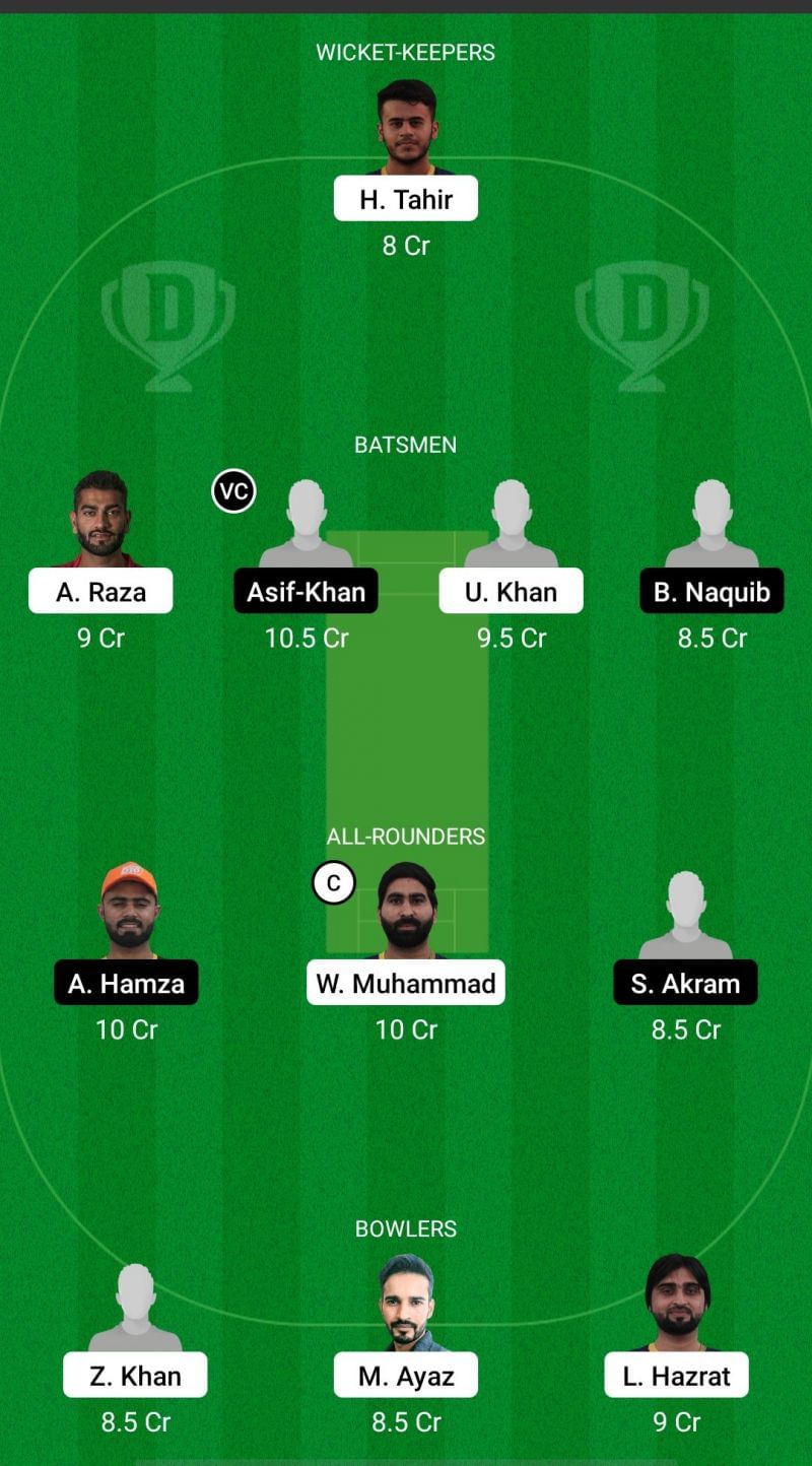 Fantasy Suggestion #1: Hamdan Tahir, Ahmed Raza, Usman Khan, Asif Khan, Bahzad Naquib, Waseem Muhammad, Shahan Akram, Ameer Hamza, Muhammad Ayaz, Zahoor Khan, Luqman Hazrat.