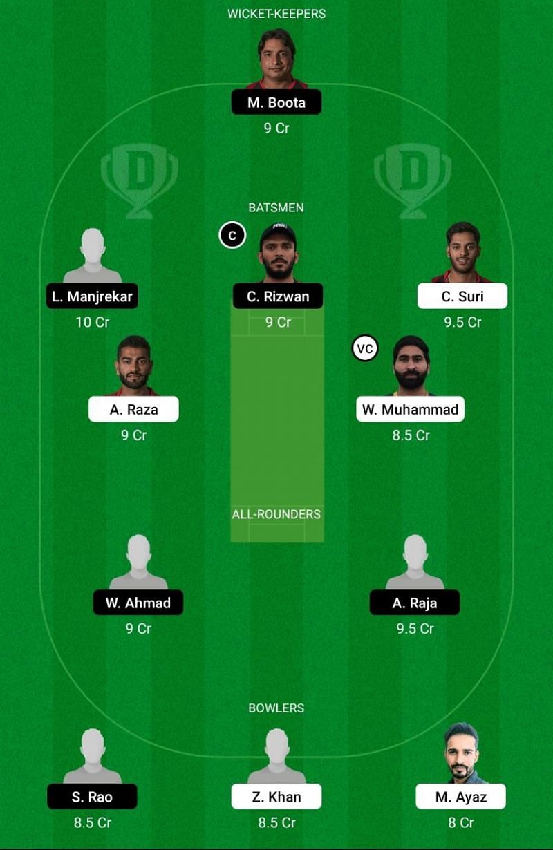 Fantasy Suggestion #2: Mohammad Boota, CP Rizwan, Ahmed Raza, Laxman Manjrekar, Waseem Muhammad, Usman Khan, Akif Raja, Alishan Sharafu, Zahoor Khan, Muhammad Ayaz, Maroof Merchant
