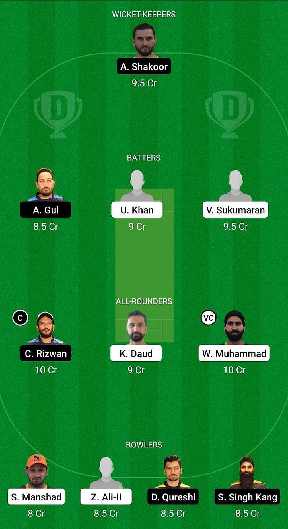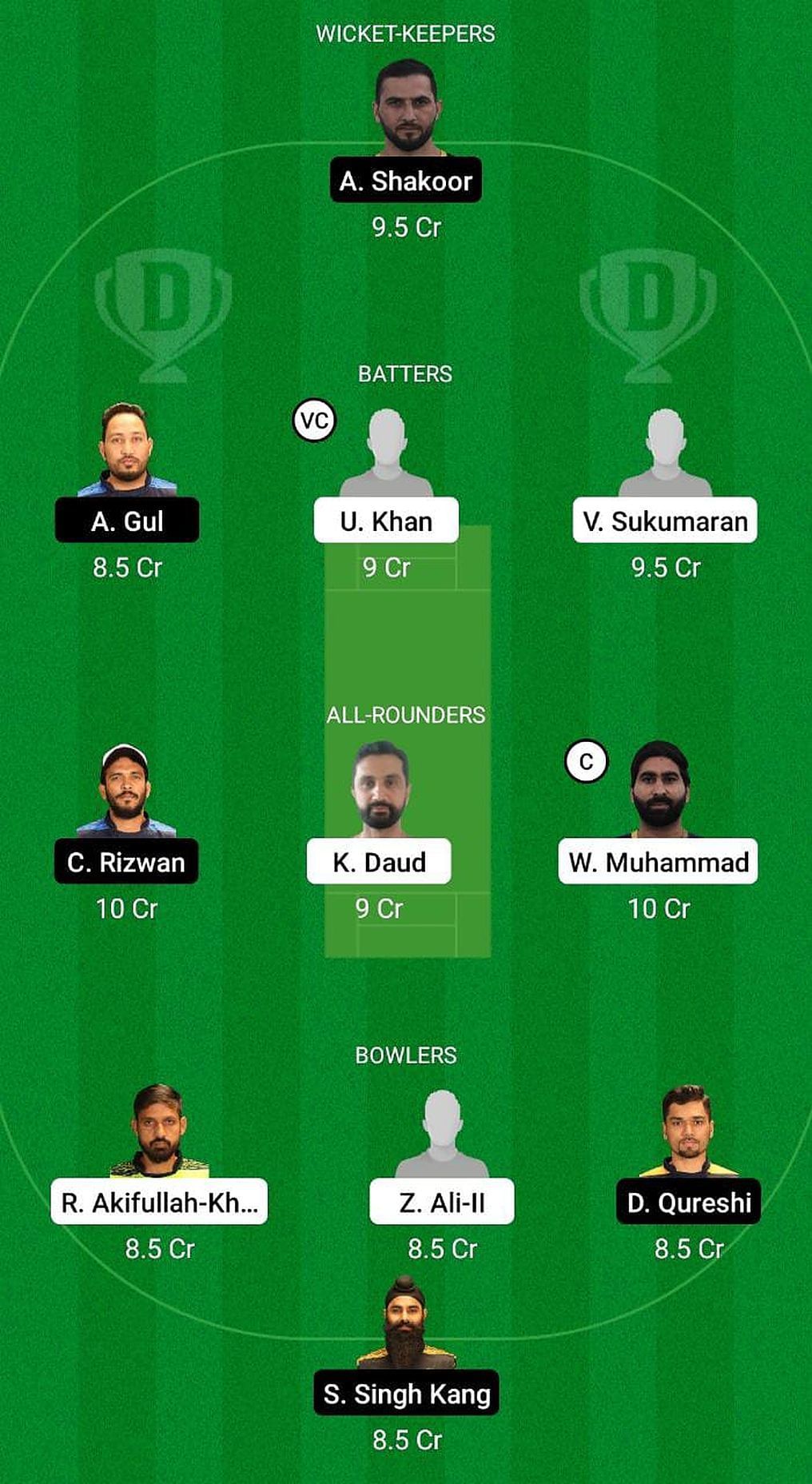 Fantasy Suggestion #1: Abdul Shakoor, Amjad Gul, Vishnu Sukumaran, Usman Khan, CP Rizwan, Kashif Daud, Waseem Muhammad, Saqib Manshad, Zahid Ali-II, Danish Qureshi, Simranjeet Singh.
