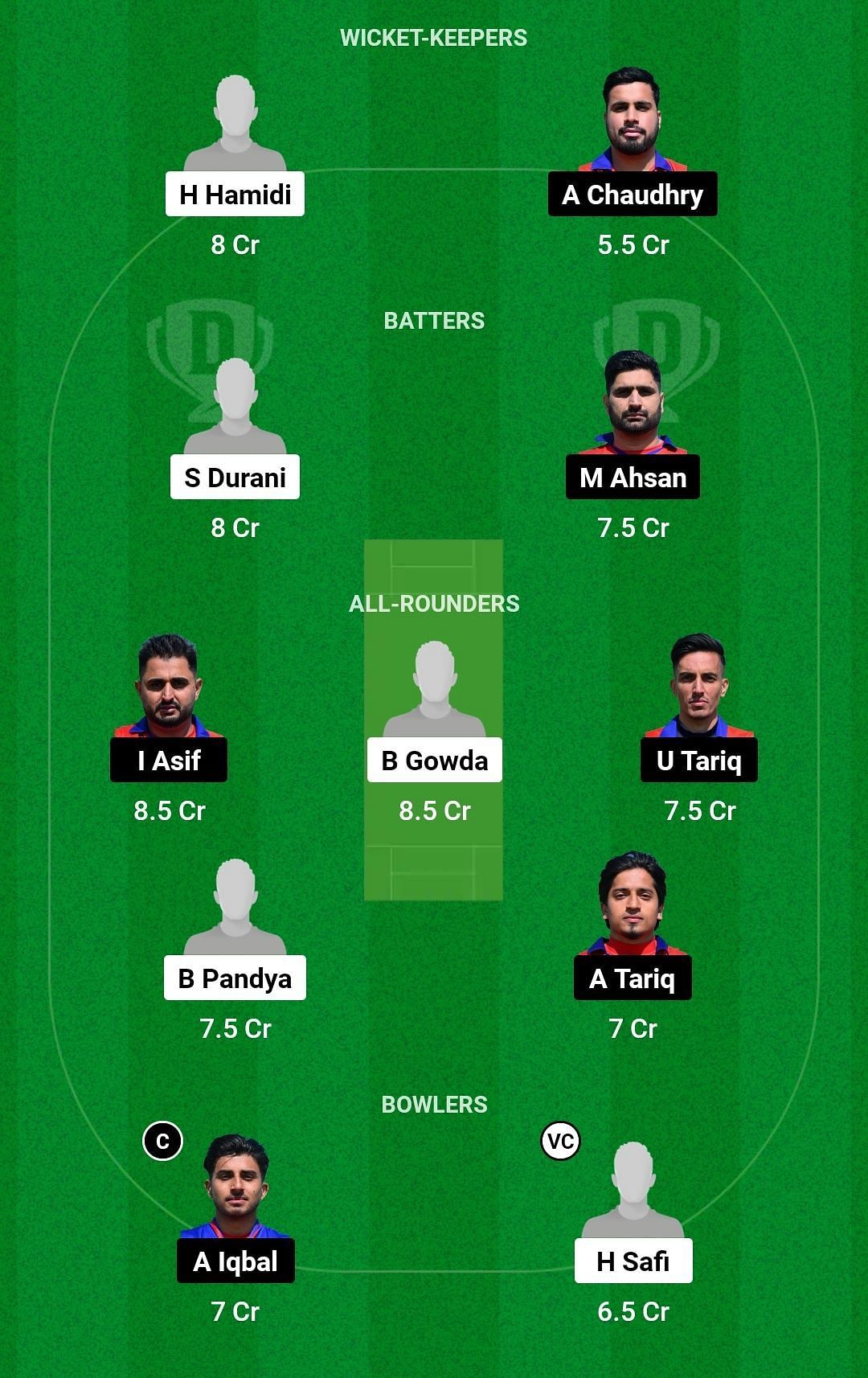 Graz Cricket Academy Probable Playing XI: Shehzad Afzal, Shawkat Durani, Bharath Gowda (c), Abidullah Kotwal, Yogesh Belage, Hamid Hamidi (wk), Abdul Jabarkhel, Rohid Hamidi, Hamid Safi, Bhargav Pandya, Kushal Madane