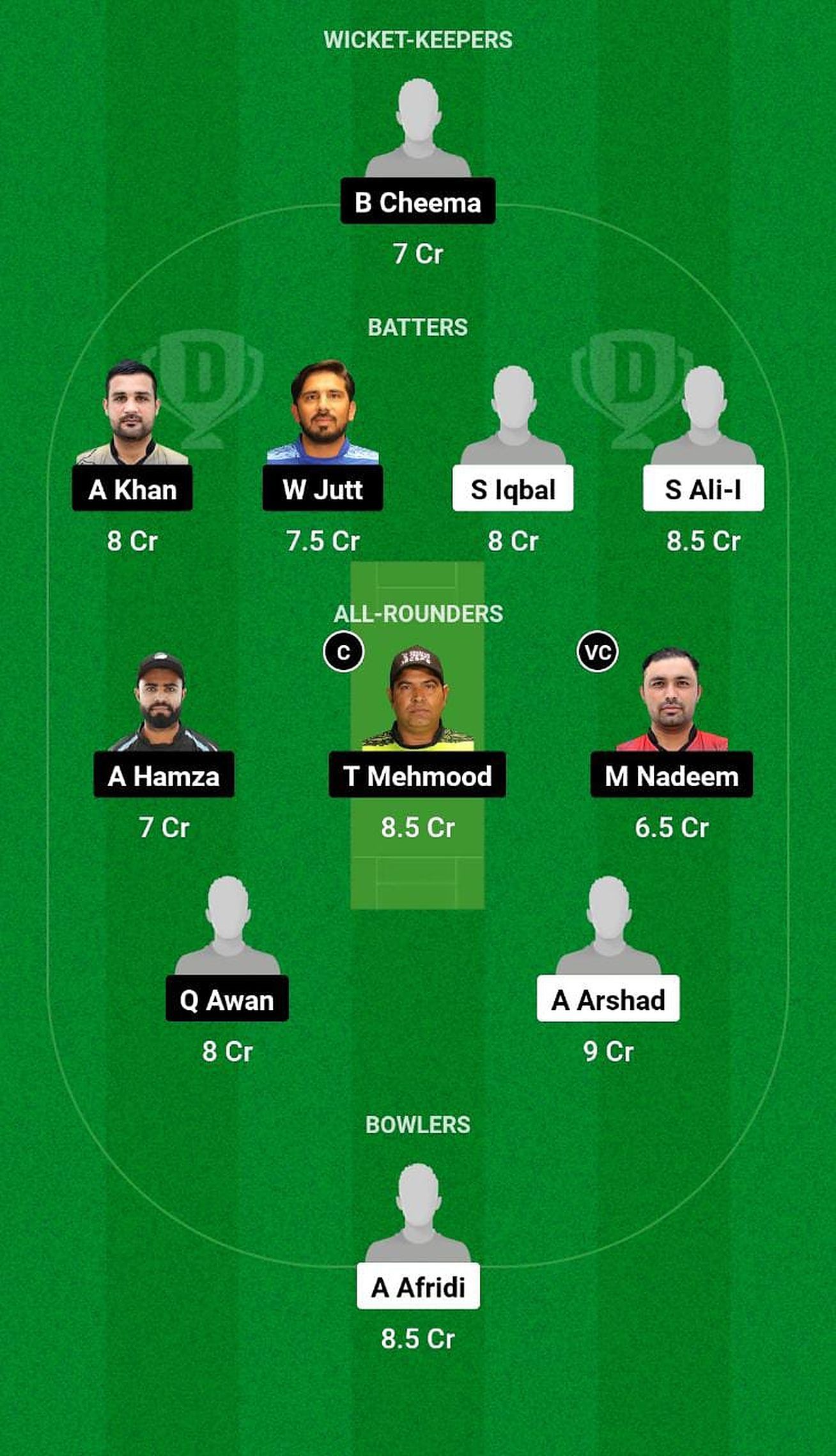 Bilal Cheema has scored 55 runs at a strike rate of 175.00 in two games. He's expected to play well in this game in a bid to continue his form.