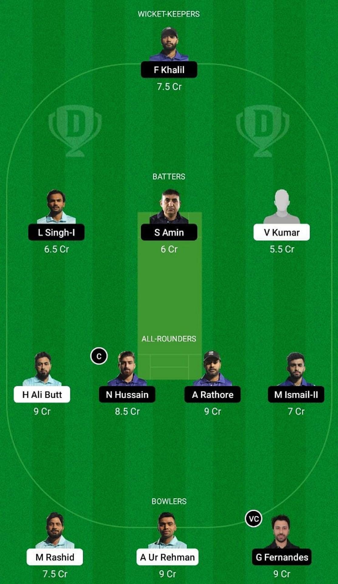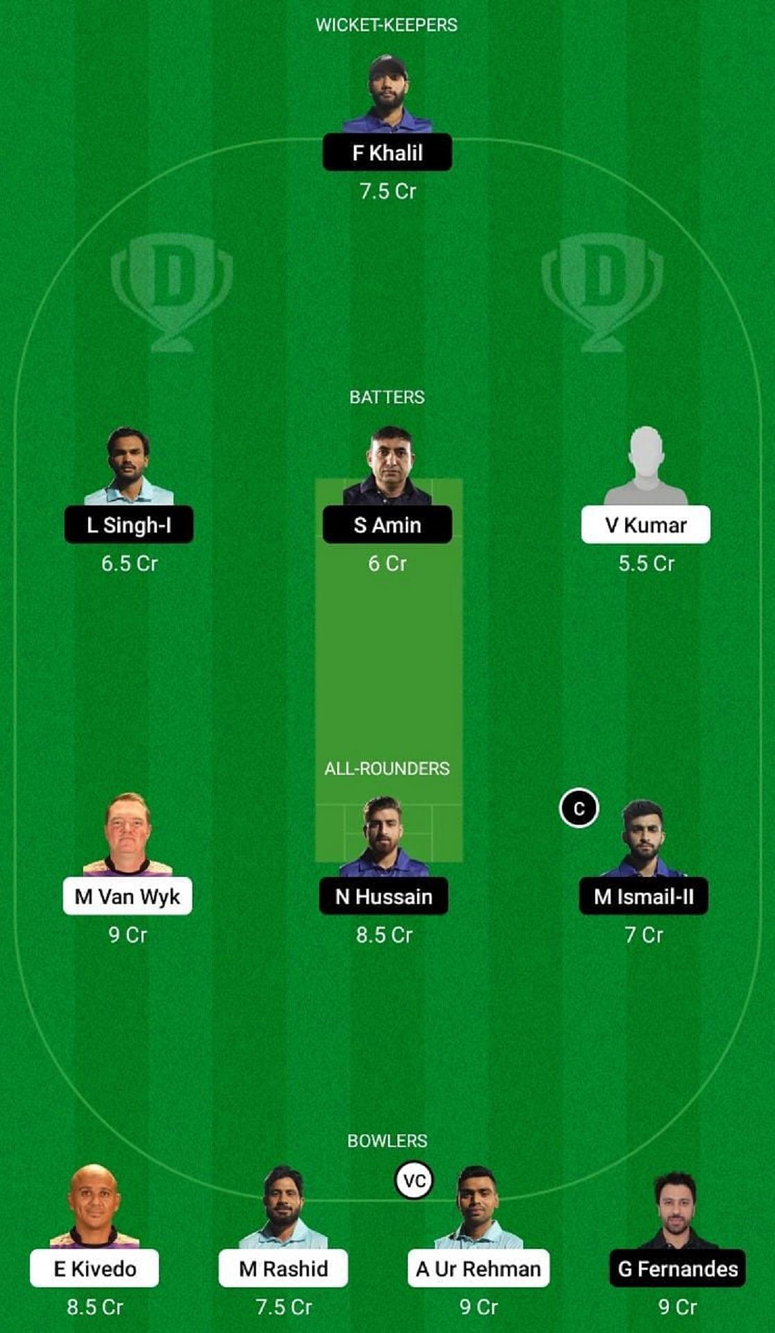 Haider Ali Butt, Asjar Ashfaq, Atta-ur-Rehman, Irfan Ali-II, Muhammad Rashid, Vineeth Nair-I, Shabeer Kunhimarakkar (wk), Casper Olivier, Ishaan Khan, Romello Ceasario Ariff, Clive Alfonso (c)