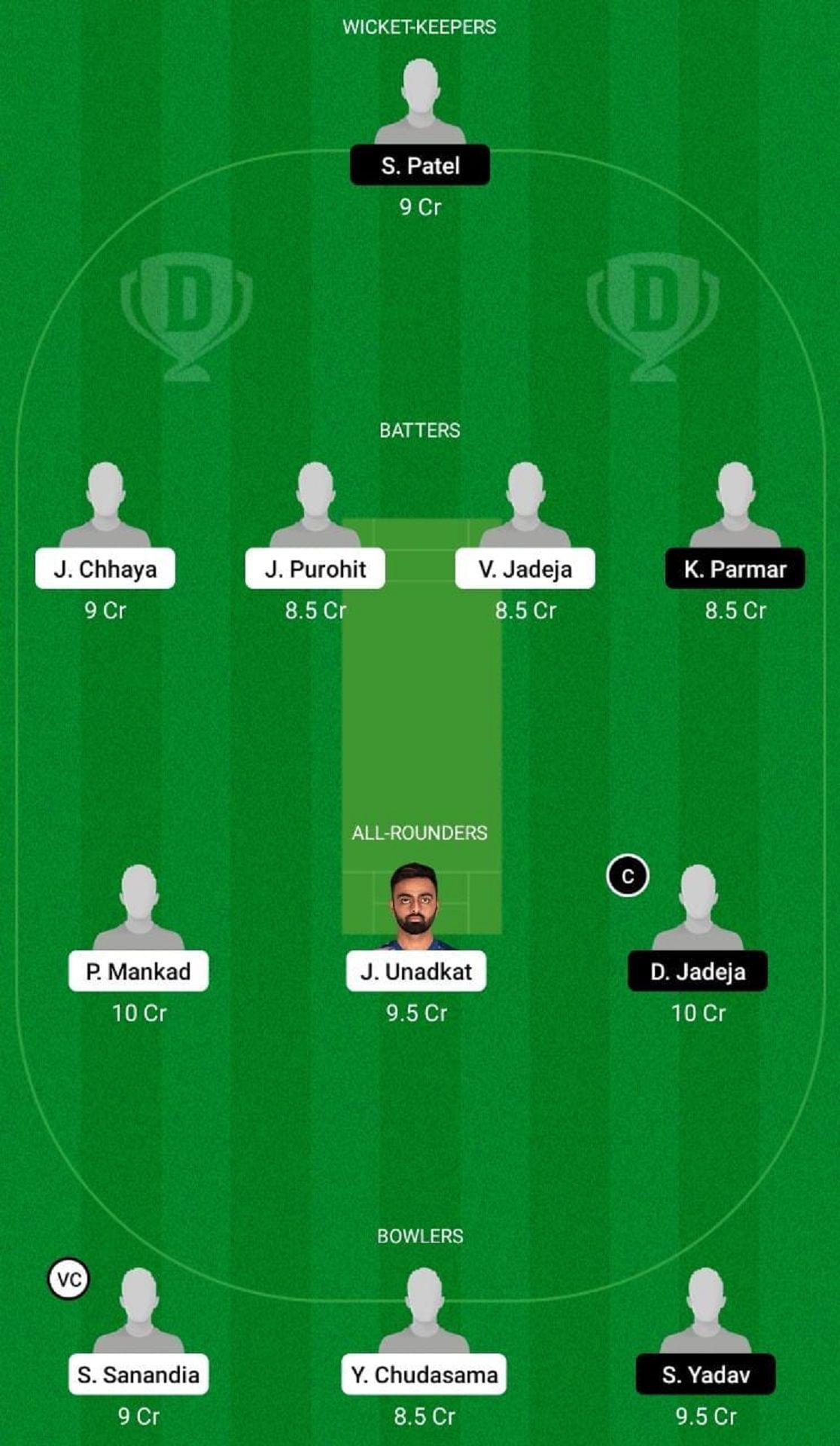 Fantasy Suggestion #2: S Patel, J Chhaya, V Jadeja, K Parmar, J Purohit, J Unadkat, D Jadeja, P Mankad, S Sanandia, S Yadav, Y Chudasama