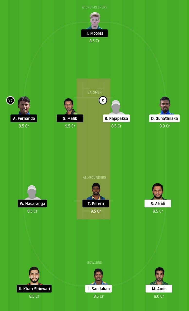 Fantasy Suggestion #1: T Moores, D Gunathilaka, A Fernando, S Malik, B Rajapaksa, T Perera, W Hasaranga, S Afridi, U Khan Shinwari, M Amir and L Sandakan