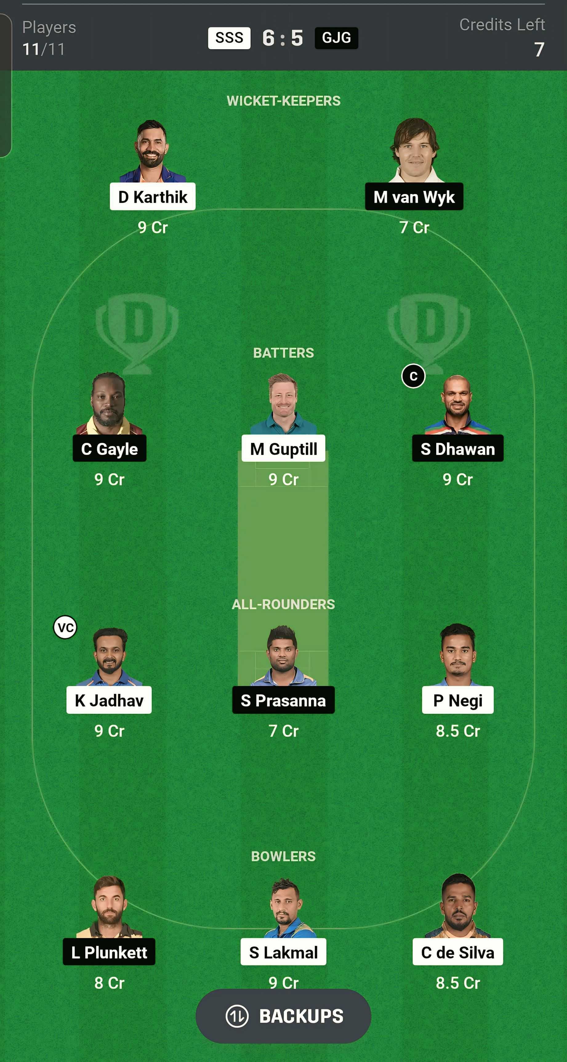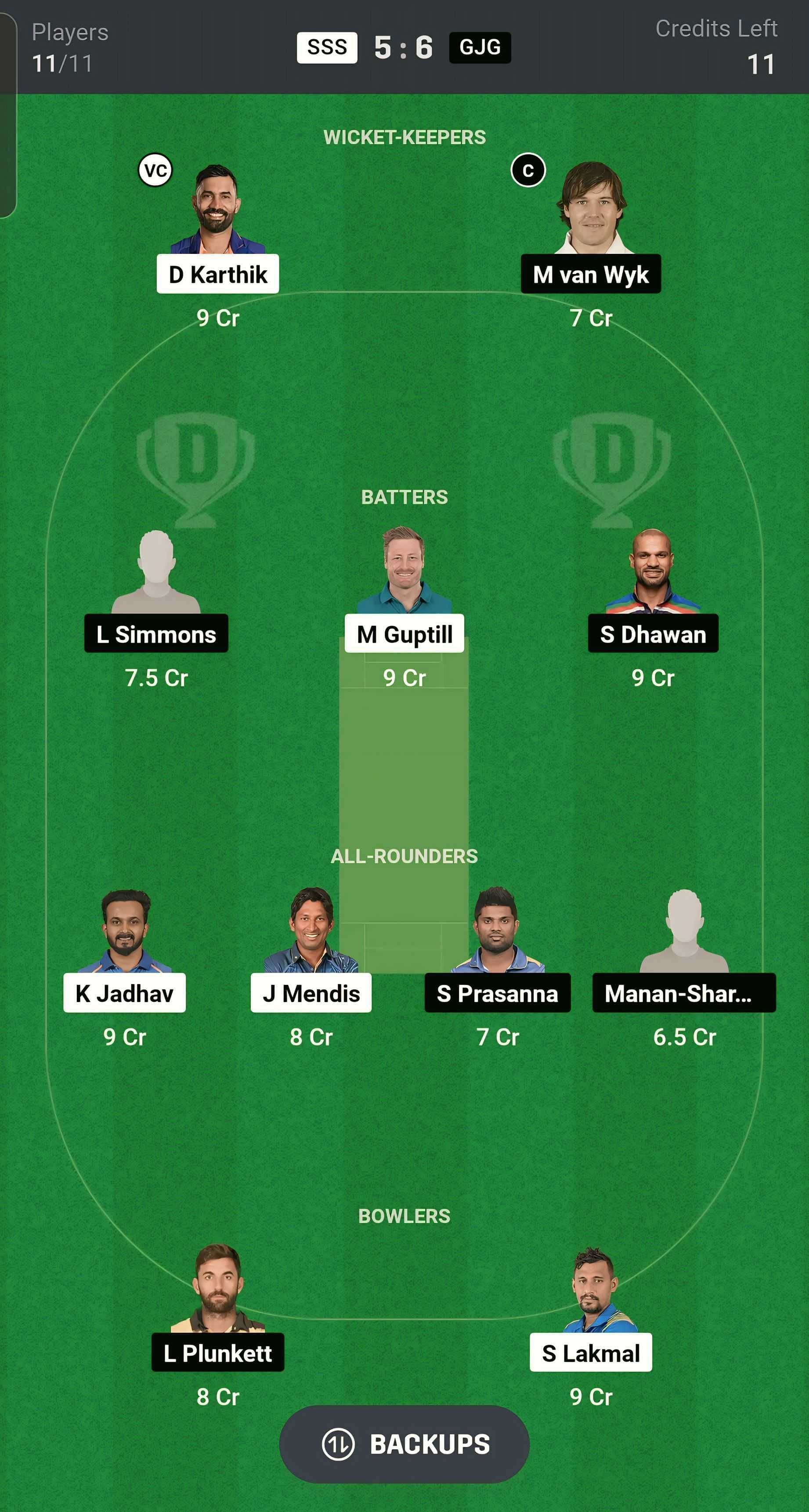 Shikhar Dhawan and Martin Guptill are the two best batsmen picks for today's Dream11 team. Both will open the innings for Gujarat Giants and are known for their hitting attitude. You can expect them to smash many runs today. Chris Gayle is another good batter option for today's nail-biting match.